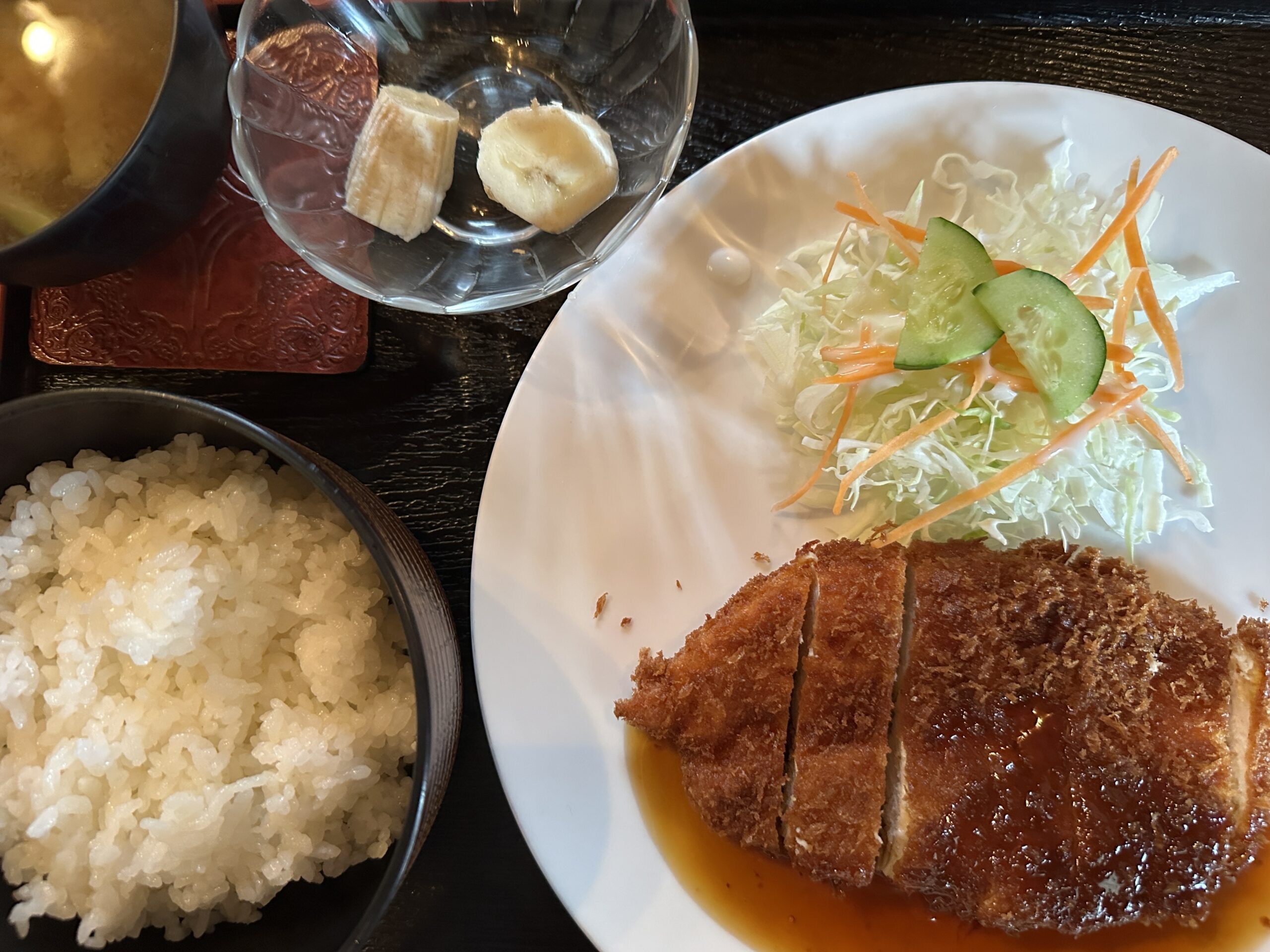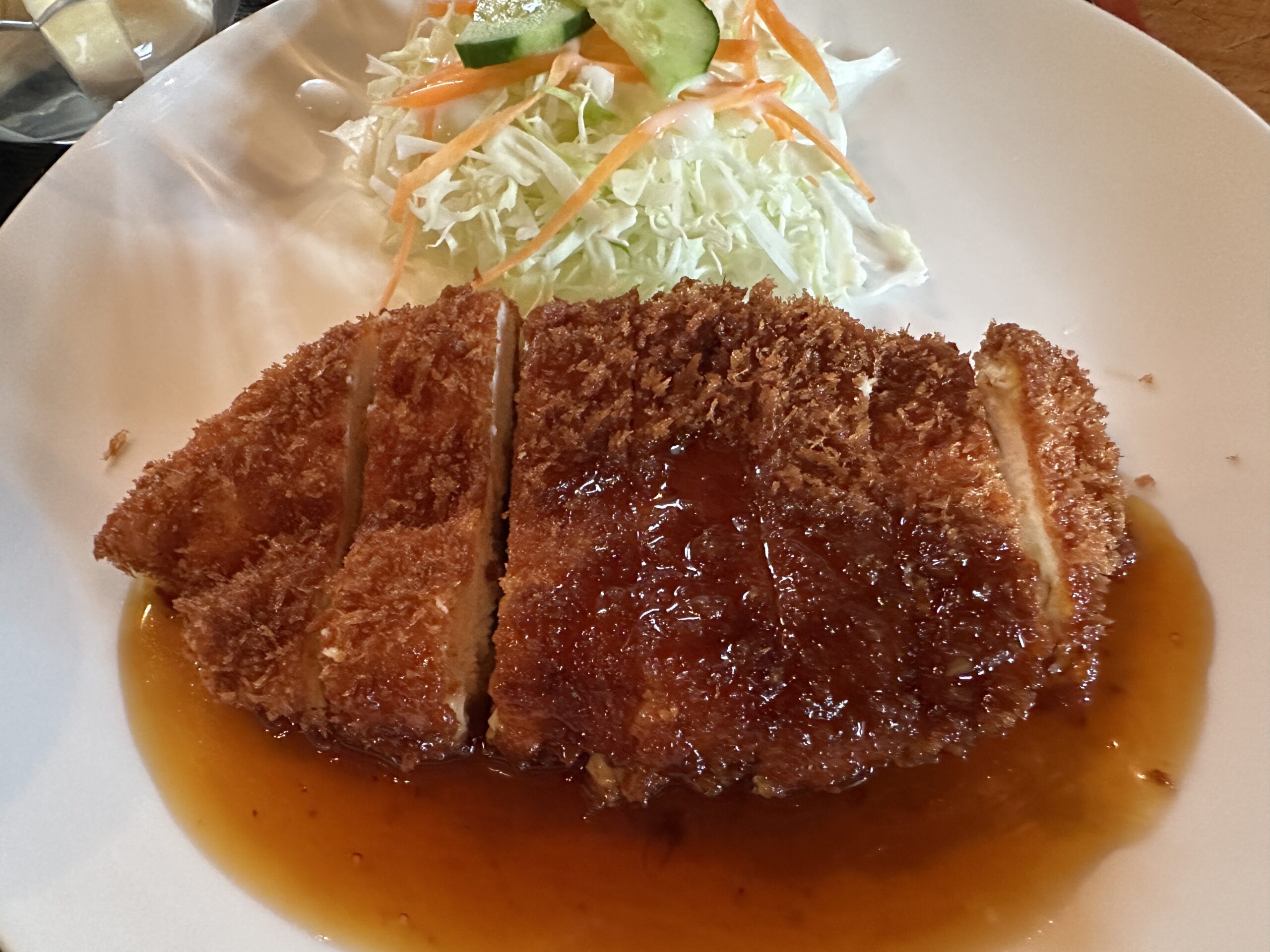 チキンカツはサクサクの衣とジューシーな鶏肉の組合わせが堪りません。照り焼きソースはさっぱりしていてチキンカツとの相性はとても良いと感じます。