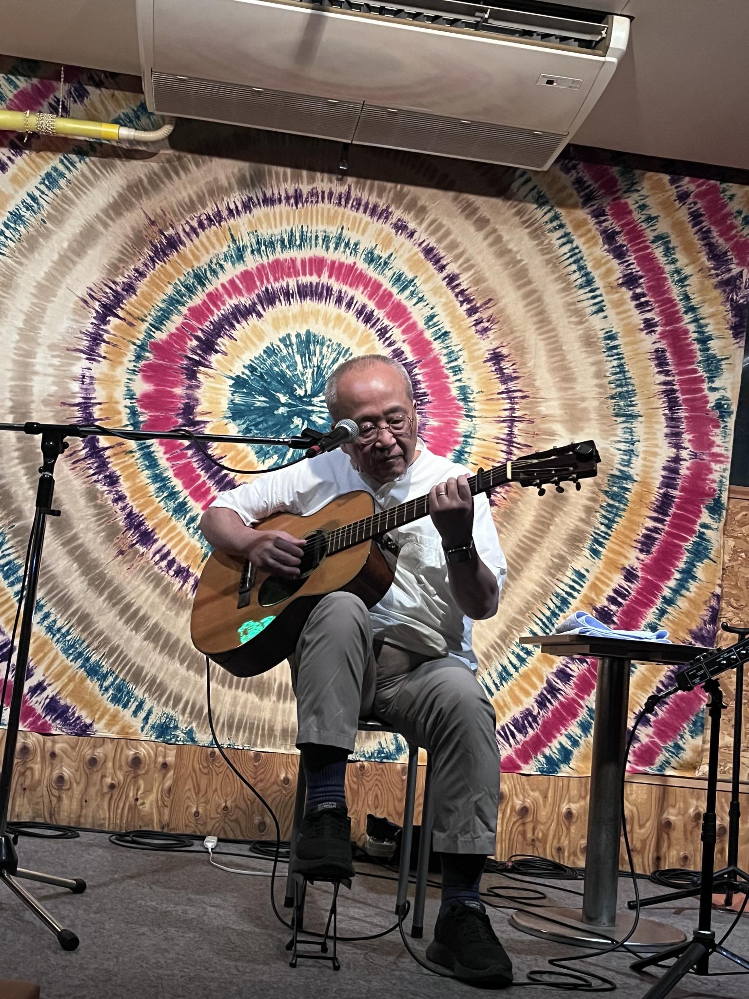 こちらは二部でギターを弾く鳳山さん。印象的なメロディーの楽曲が多く、とても楽しめるライブでした。ご本人は礼儀正しい若者でした。