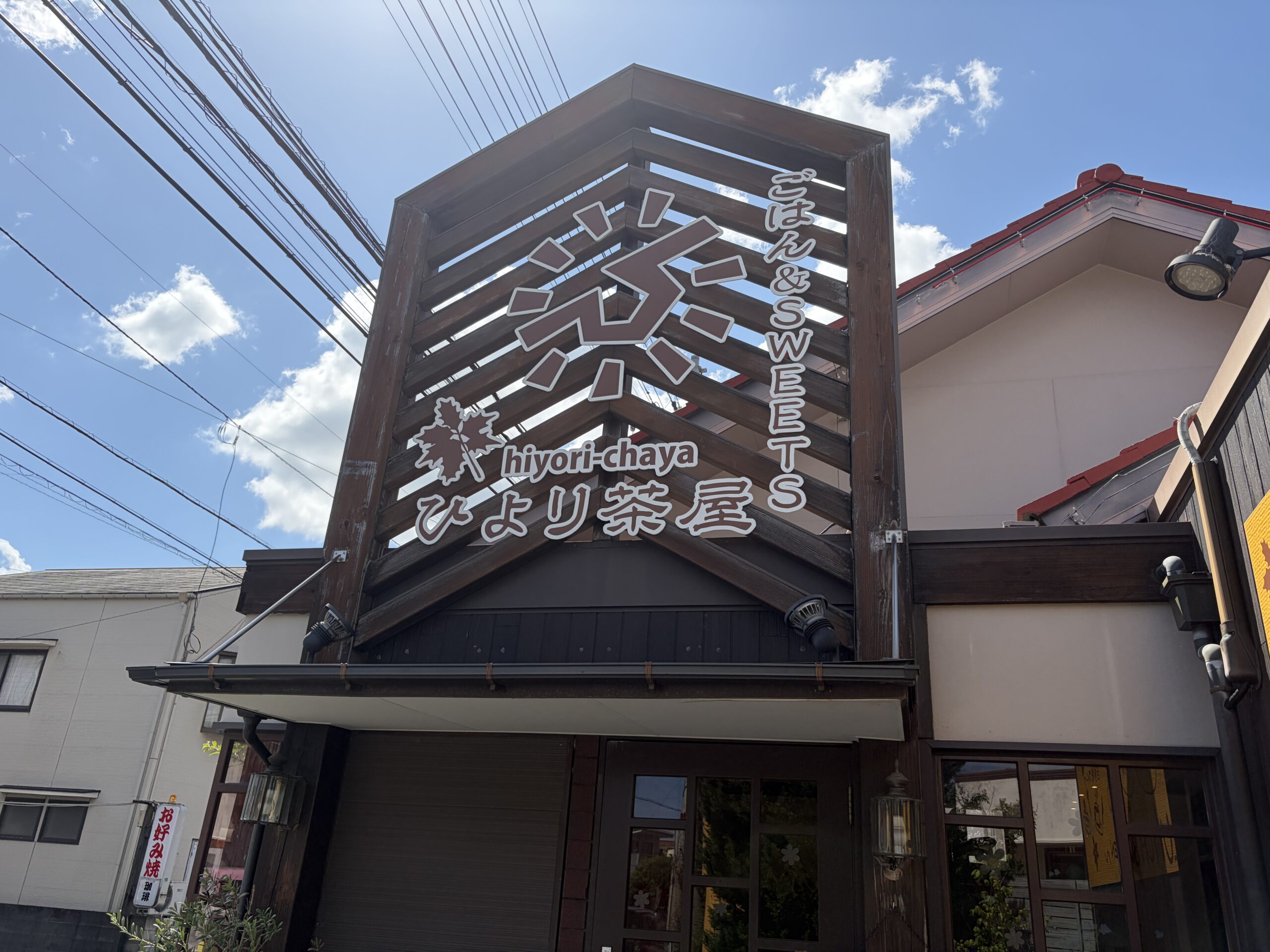 午前中に来客があったのでお昼は「ひより茶屋」でランチをいただくことにしました。駐車場に着くとラッキーなことに3台分の空きがありましたが、壁際の止め難いところに停めるしかありませんでした。店に入ると一組のお勘定を済ませて店を出ようとしているところだったので駐車場に引き返して車が出るのを待ってその後に車を回しました。