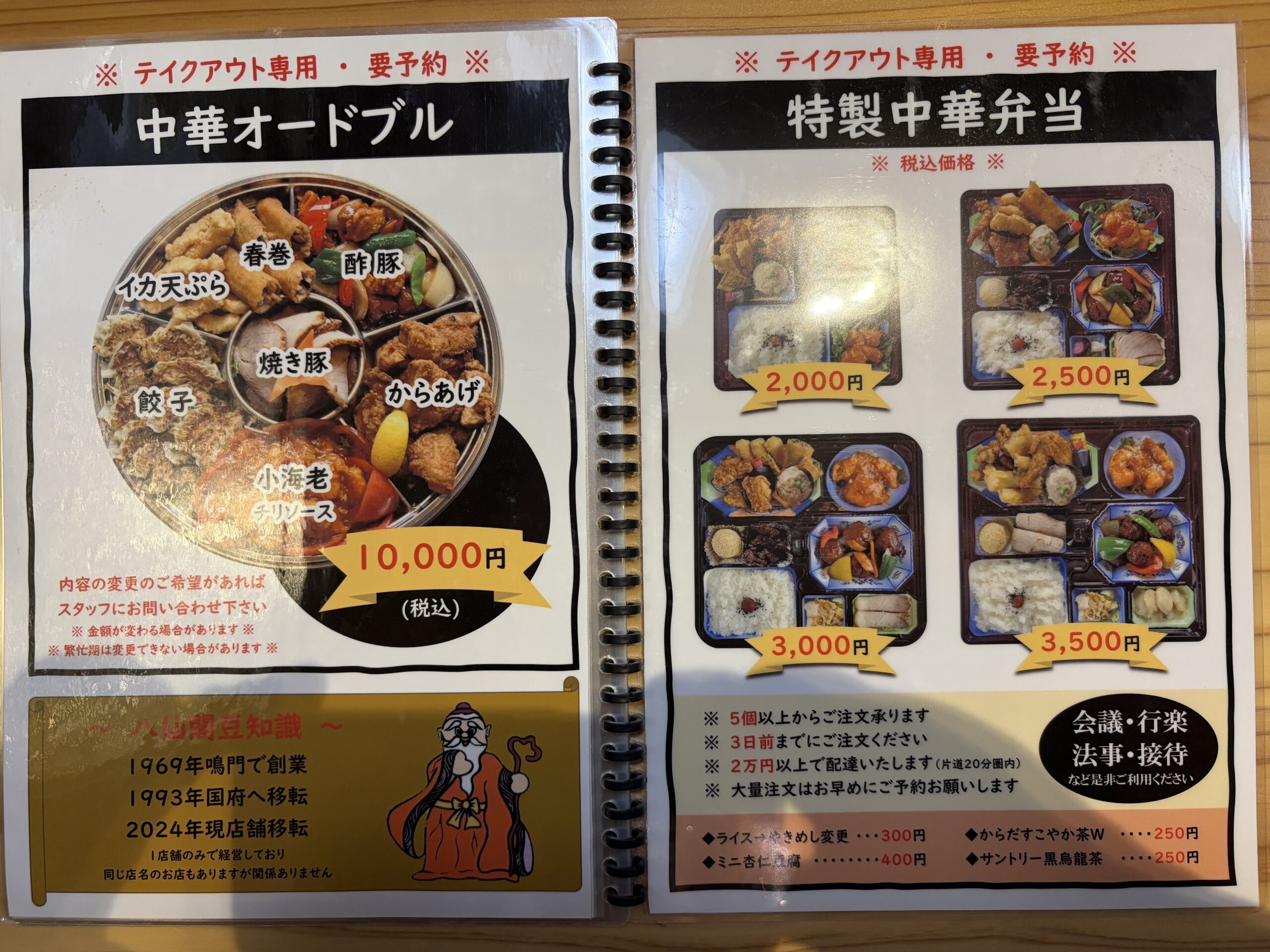 店に入るとスタッフの方が席に案内してくれました。店の中はとても広くてカウンター席も何箇所もあるようです。注文は席に準備されたタブレットかスタッフに直接伝えて注文することもできるようです。座席の前にスタッフを呼び出すためのボタンがありました。注文したのは「中華丼(中)」と「焼売」。