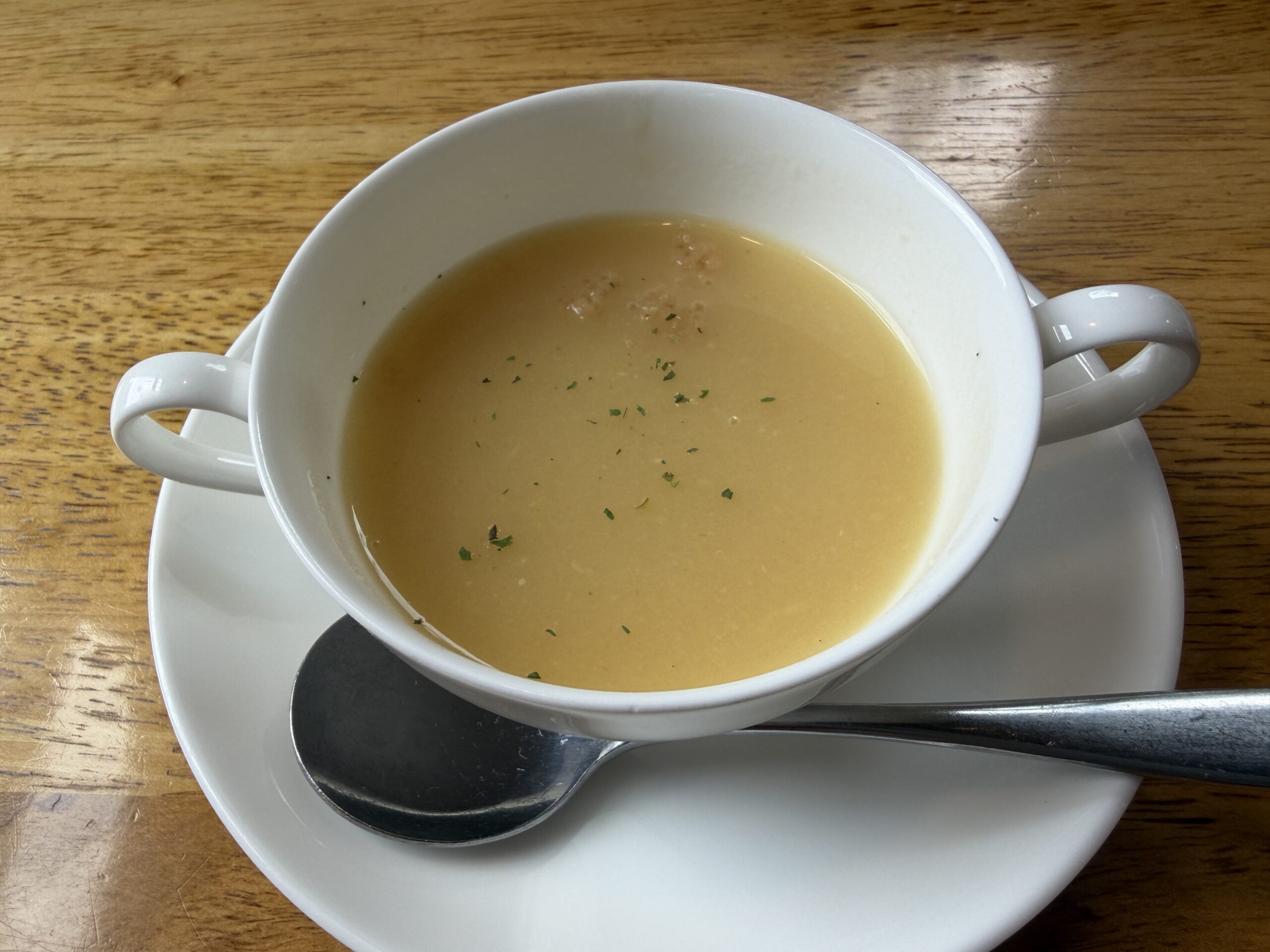 最初にスープが運ばれてきます。いつものホッとする味で和みます。