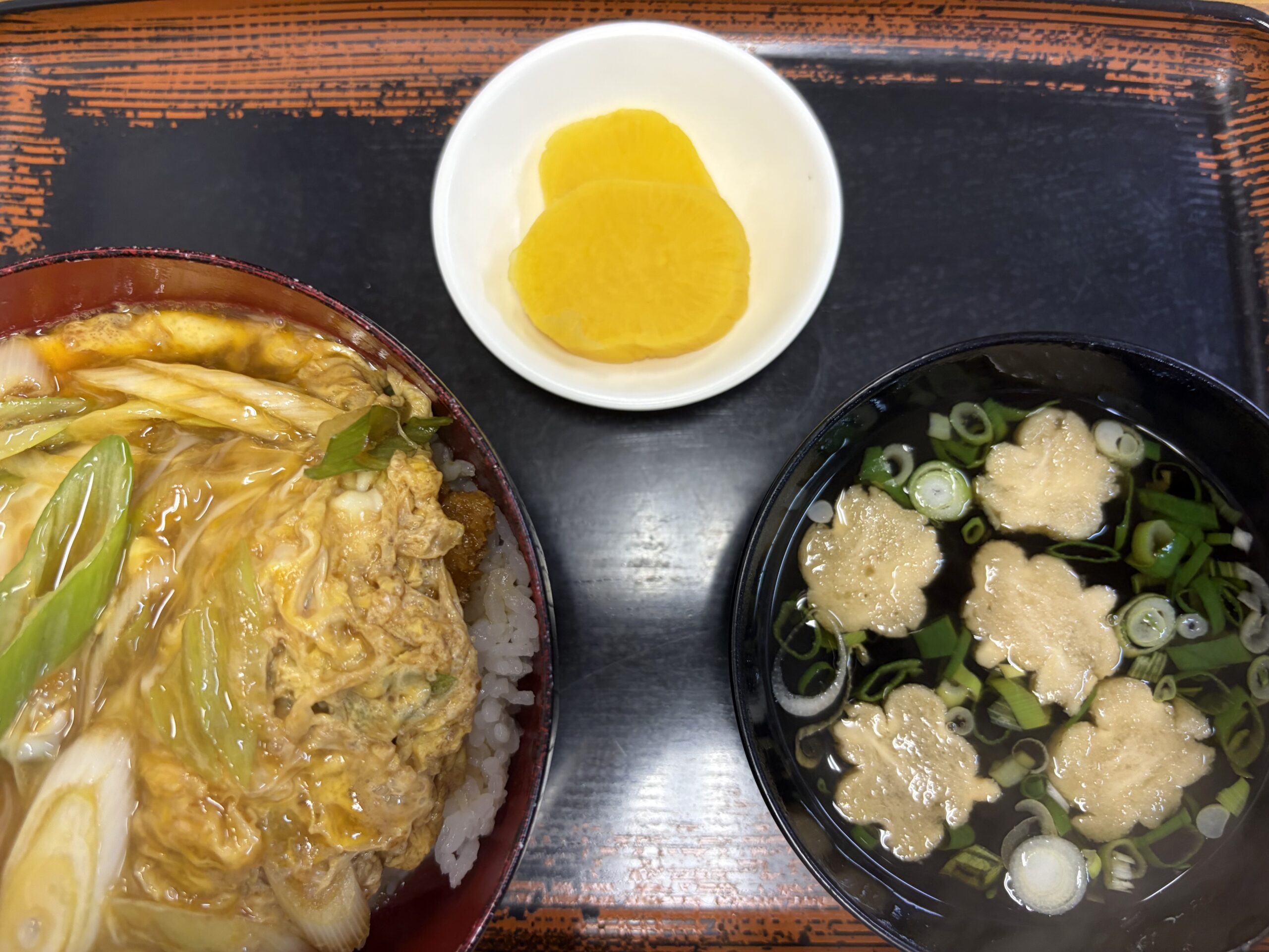 カツ丼はシャキシャキのネギがたっぷり入っていて、少し辛めの味付けですがご飯の量が多かったのでご飯を崩しながら食べ進めることができました。トンカツは脂身が少なくて食べ易いものでした。