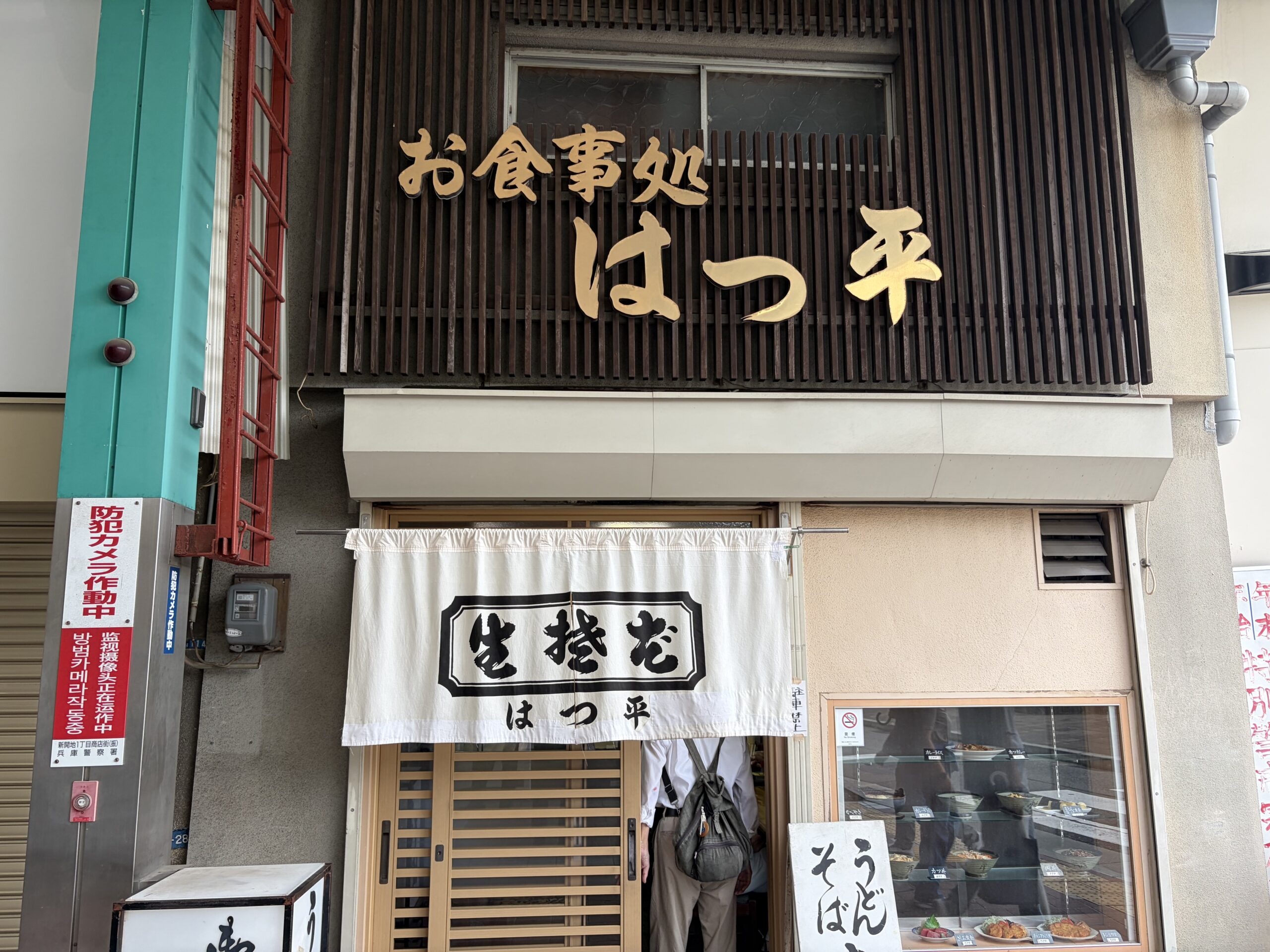 長時間のジャグバンド・フェスティバルに備えて、フェスの前に腹拵えをしておくことにしました。阪急新開地駅を降りてアーケードを歩きながら店を探しましたが、立ち食いのうどん屋と中華料理屋ばかりでした。明日の夕飯は苦楽園の行きつけの中華料理屋と決まっているので、中華料理を外すと立ち食いうどんだけになってしまいます。家内が座って落ち着いて食べたいというのでアーケードの端まで歩くと昔ながらの食堂「お食事処 はっ平」がありました。