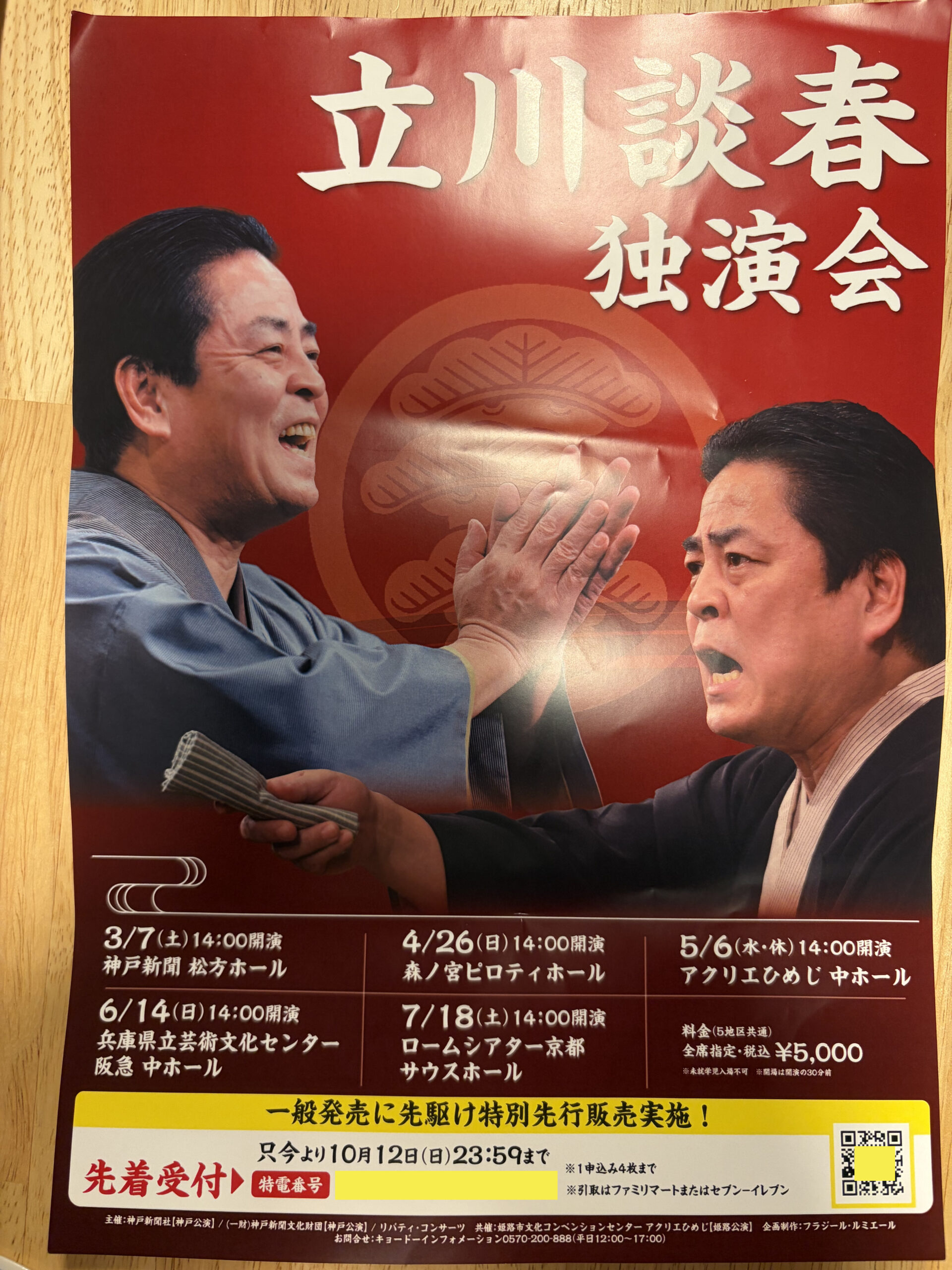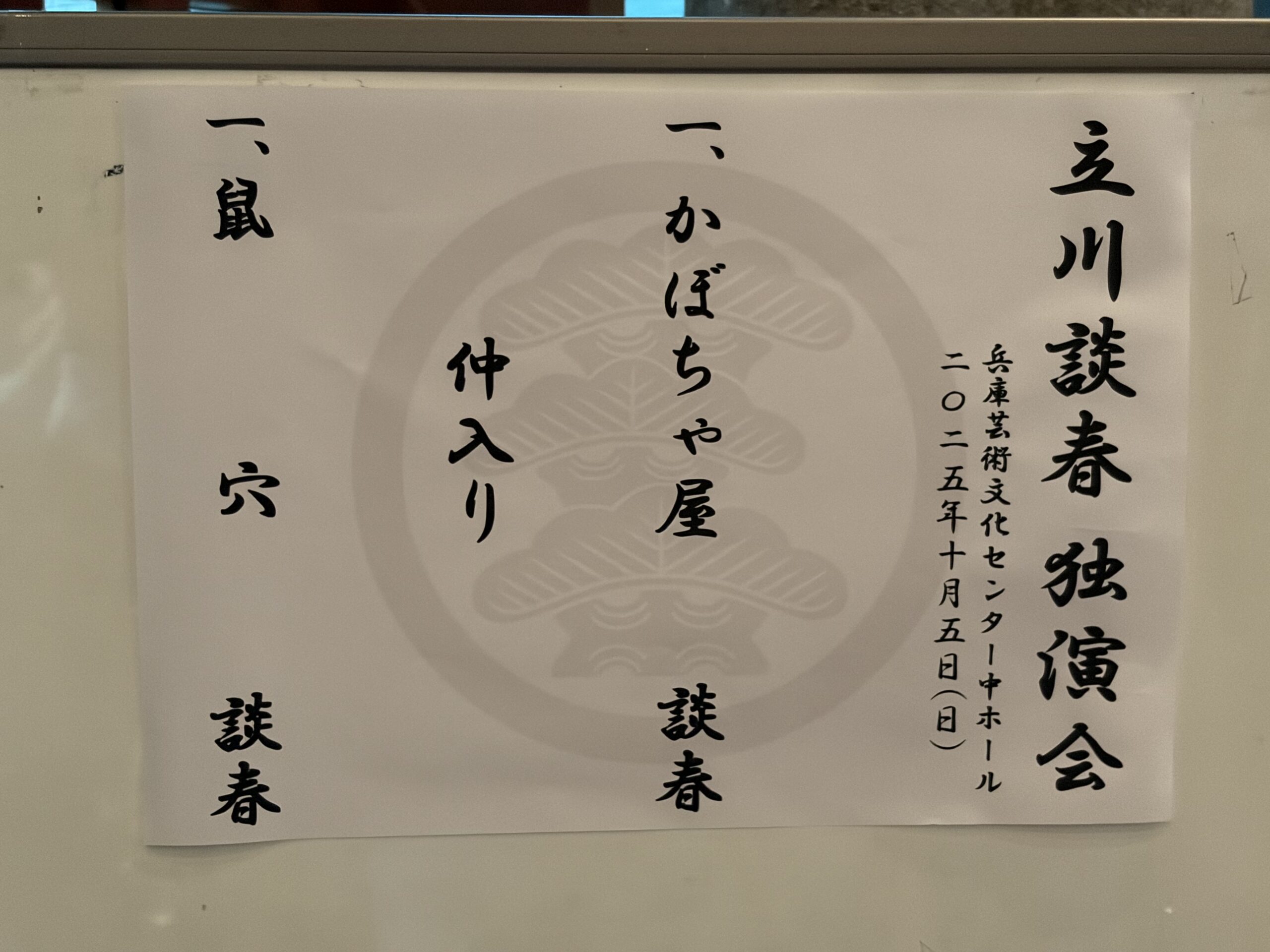 10月5日(日)に兵庫県立文化センターで開催された「立川談春独演会」を聴きに行きました。