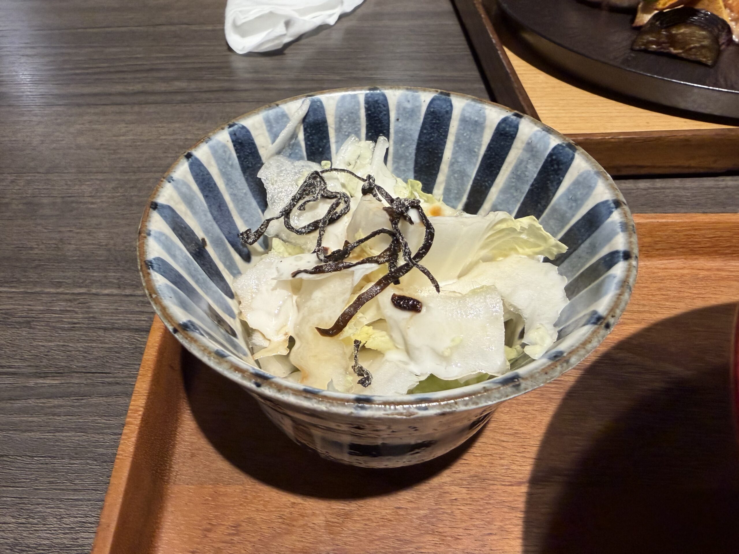 白菜サラダには塩昆布が乗っていて結構美味しくいただけました。