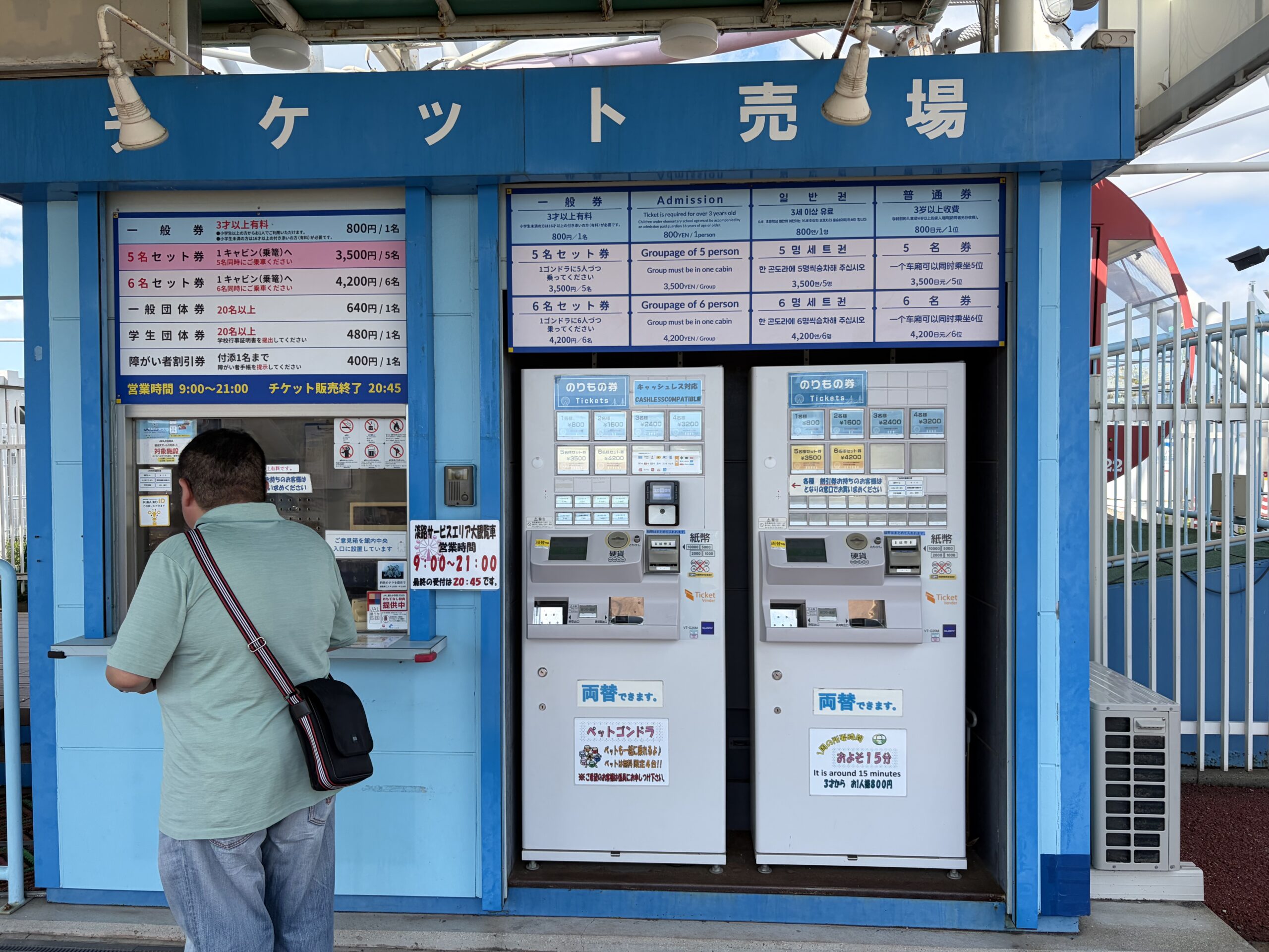 左側の自販機はキャッシュレス対応ですが右側の自販機は現金のみのようです。家内のチケットを買おうとすると二人分と言われ、仕方なく同行することになりました。