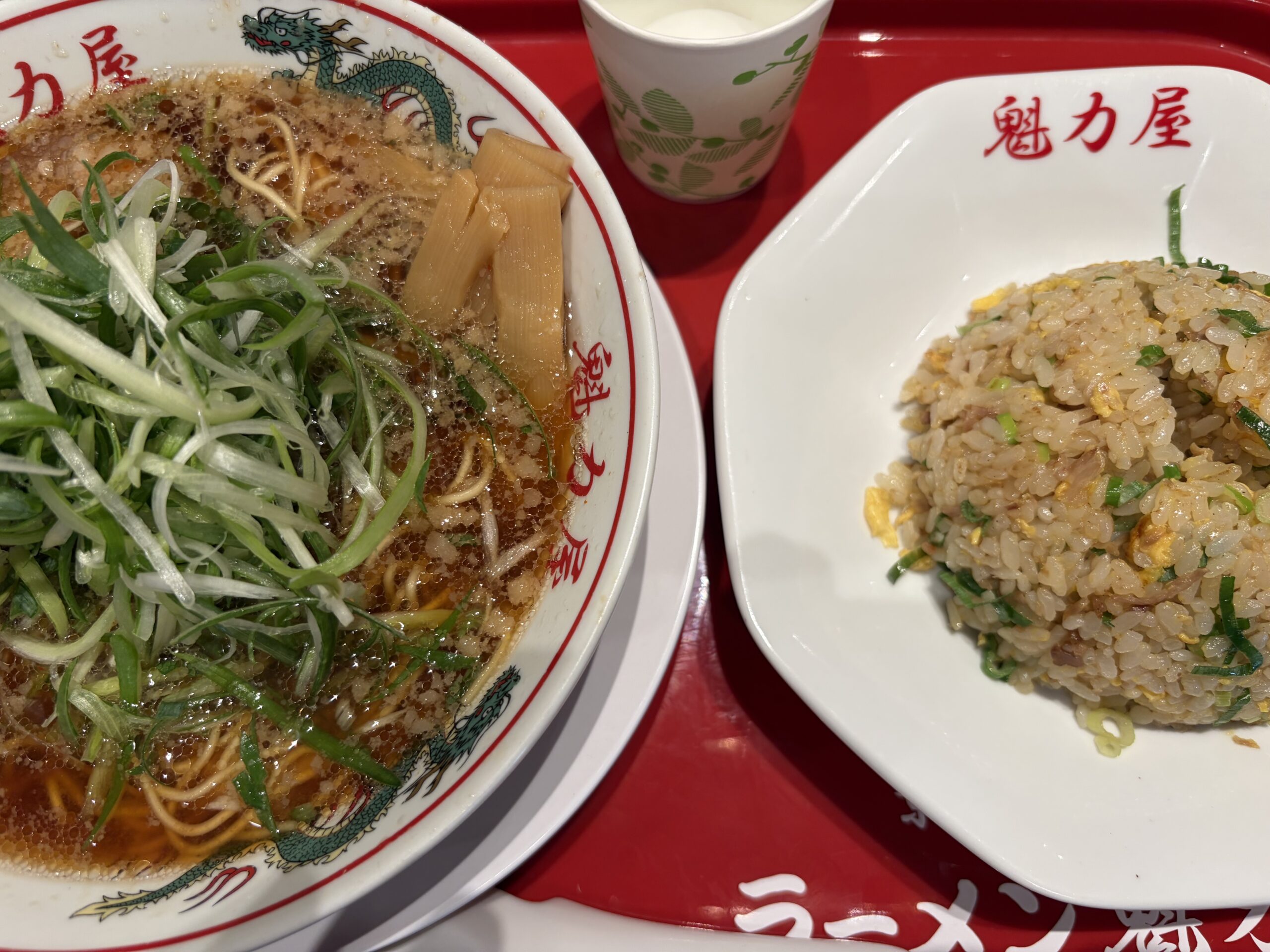 こちらは「焼きめし」。少し脂っぽさを感じますが、見た目ほど辛くなく、ネギ多めで結構美味しくいただきました。