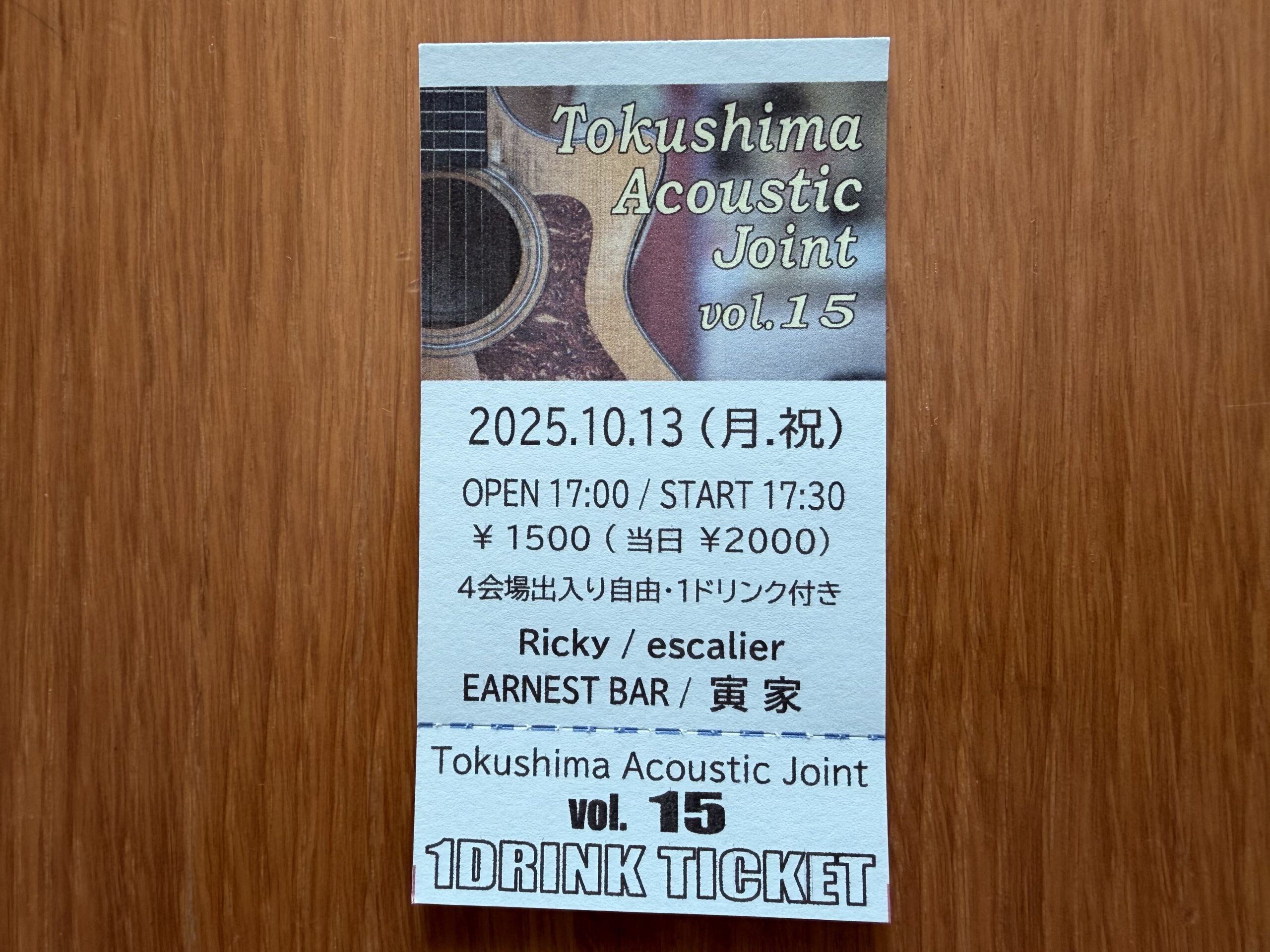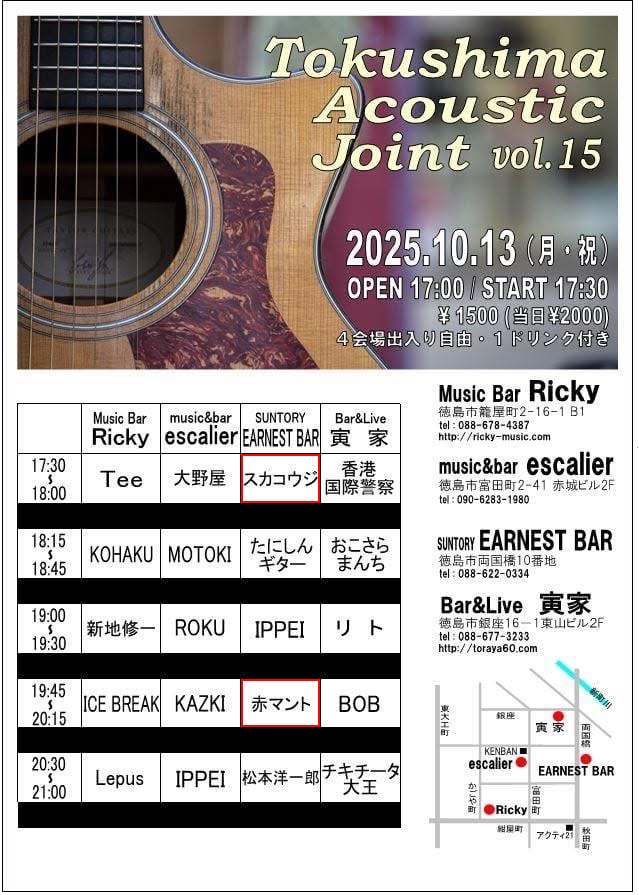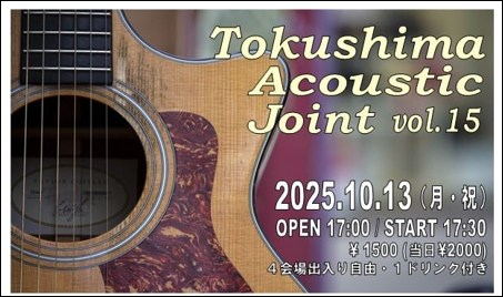 赤マントさんのお誘いもあって、7月に開催されたvol.14に続いて「Tokushima Acoustic Joint vol.15」にお邪魔することにしました。