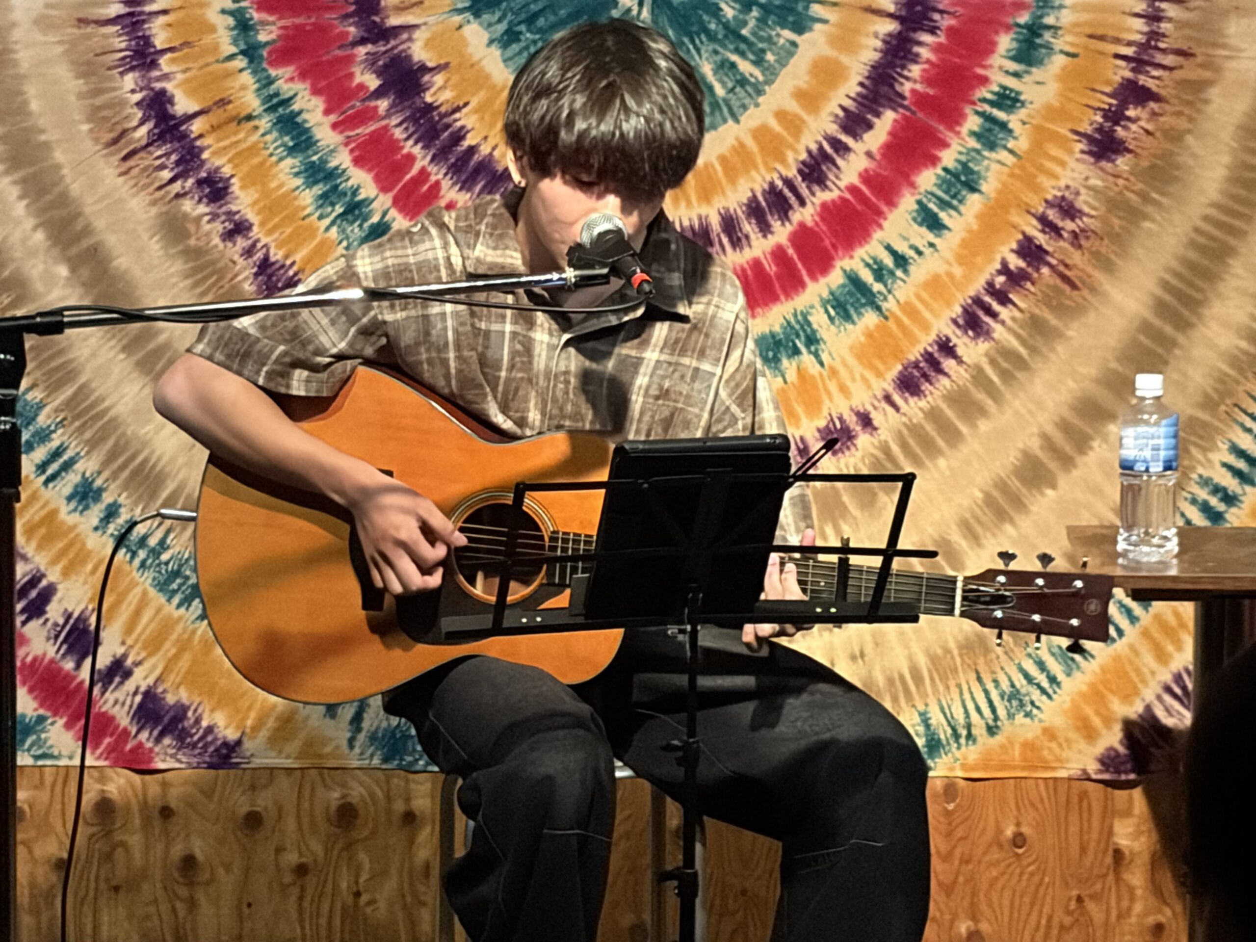 こちらが17歳の高校二年生の「リト」さん。恥ずかしそうに歌い始めますが、とても繊細な演奏と伸びやかな歌声のバランスが良くて驚かされました。一つだけ残念だったのはローリングカポを使っているようで、何度目かのカポの移動で弦のピッチに影響が出ていました。寅さんに彼の演奏が終わったらローリングカポは止めた方が良いと伝えて欲しいと頼んで店を出ました。将来が楽しみな若者でした。