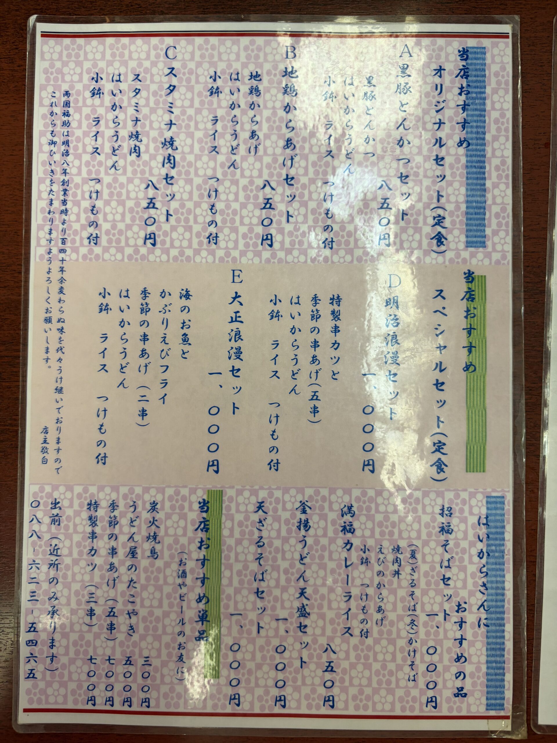 お祝いの花に刺さっていたものなのか創業150周年のフダが鉢植えにたくさん刺さっていました。それにしても創業150周年の食堂も珍しいと思います。