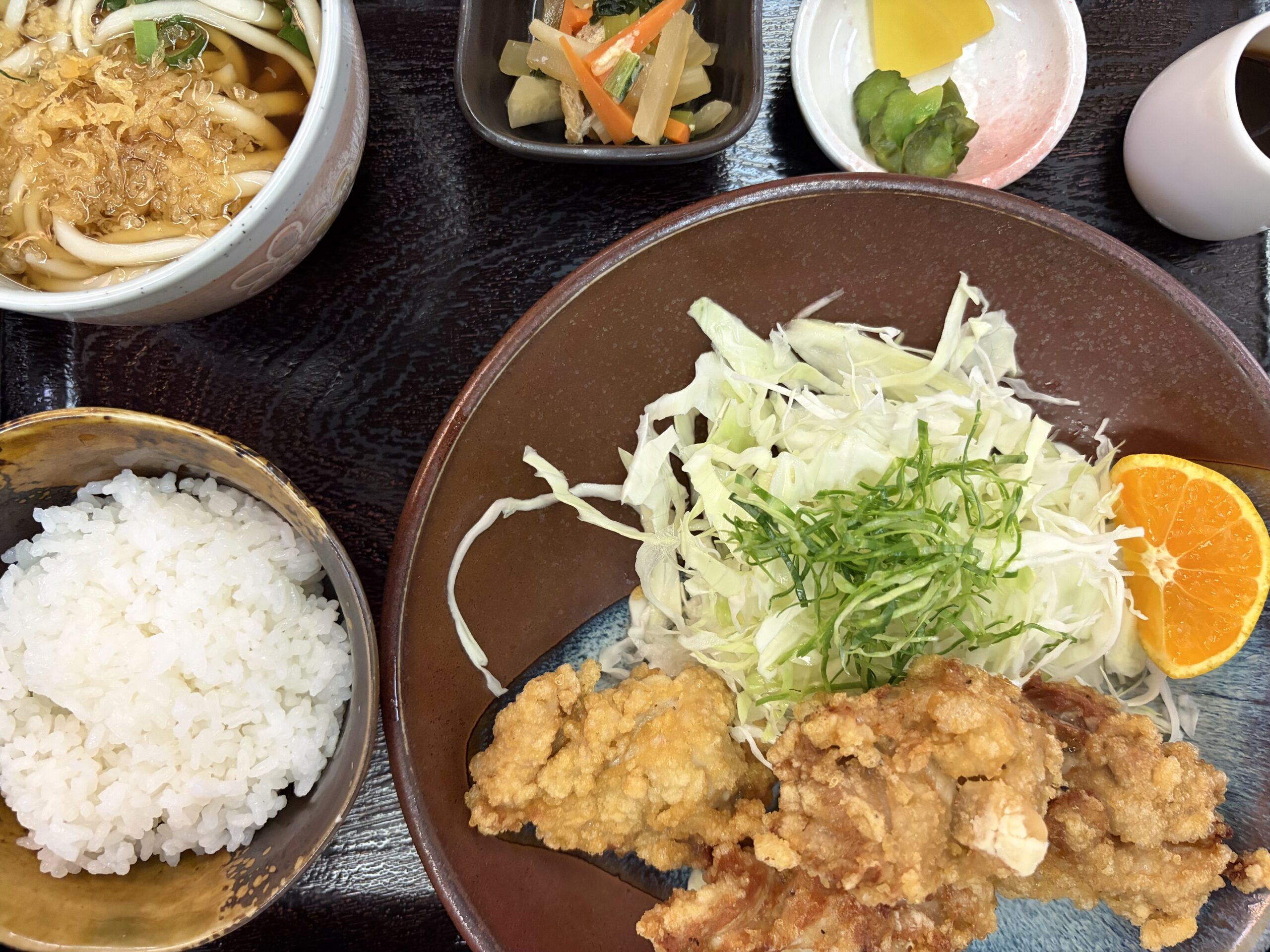お腹が空いていたのと、多くのお客さまが唐揚げを食べていたことを思い出したので「地鶏からあげセット」を注文。しばらくして料理が運ばれてきました。