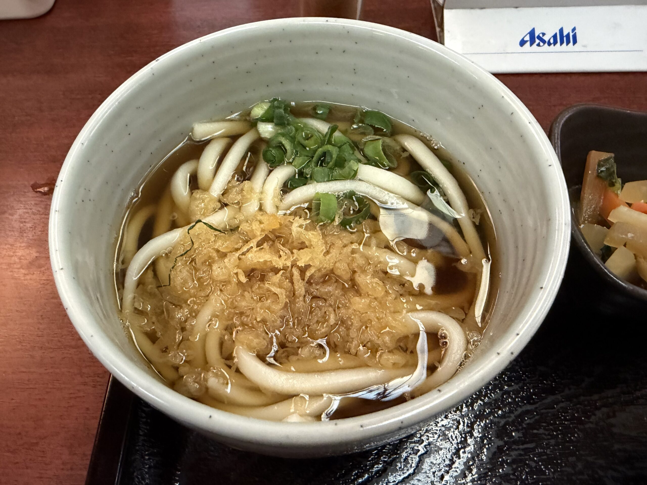 こちらは「はいからうどん」。見てのとおり出汁は少し辛めでした。