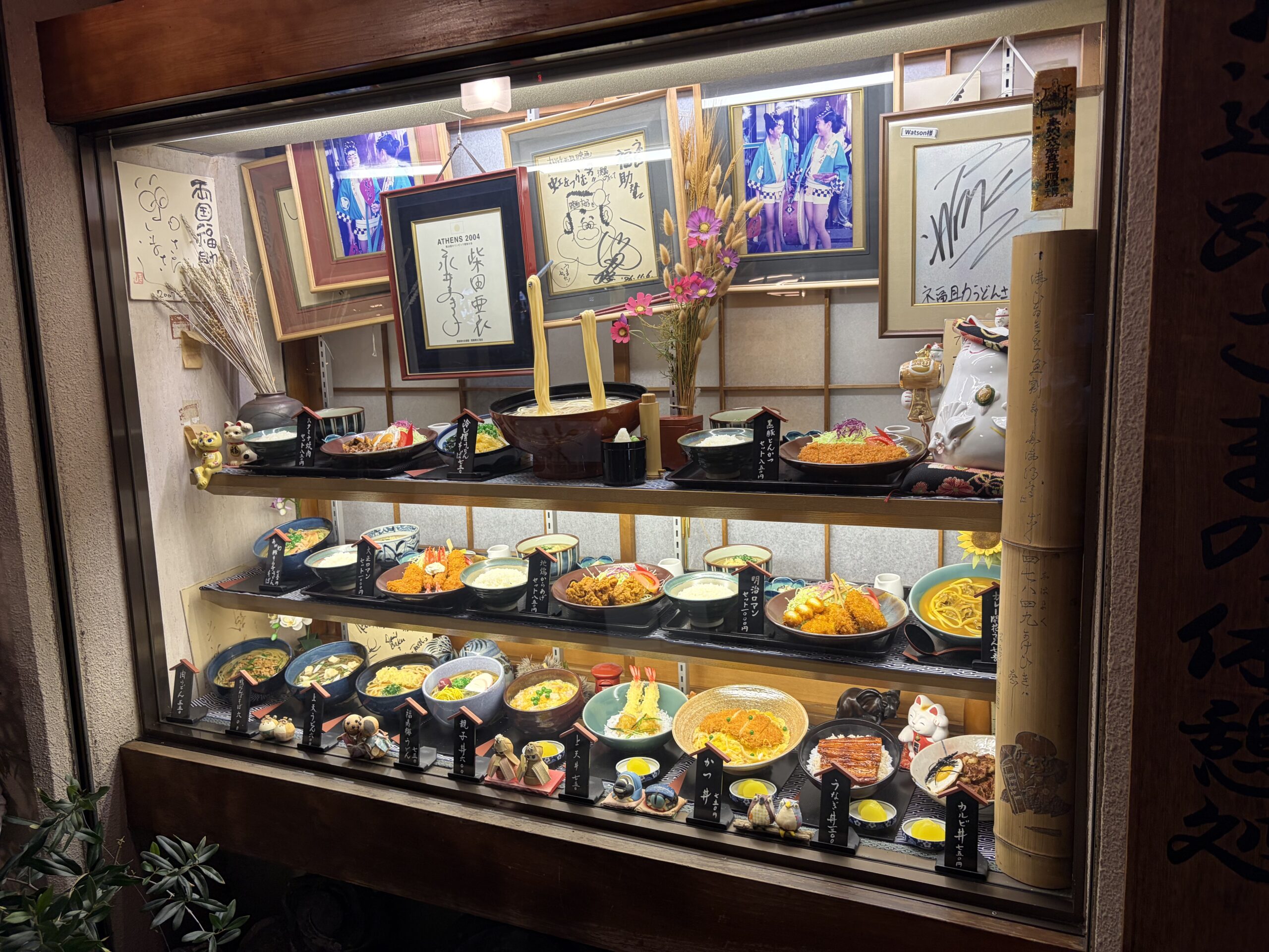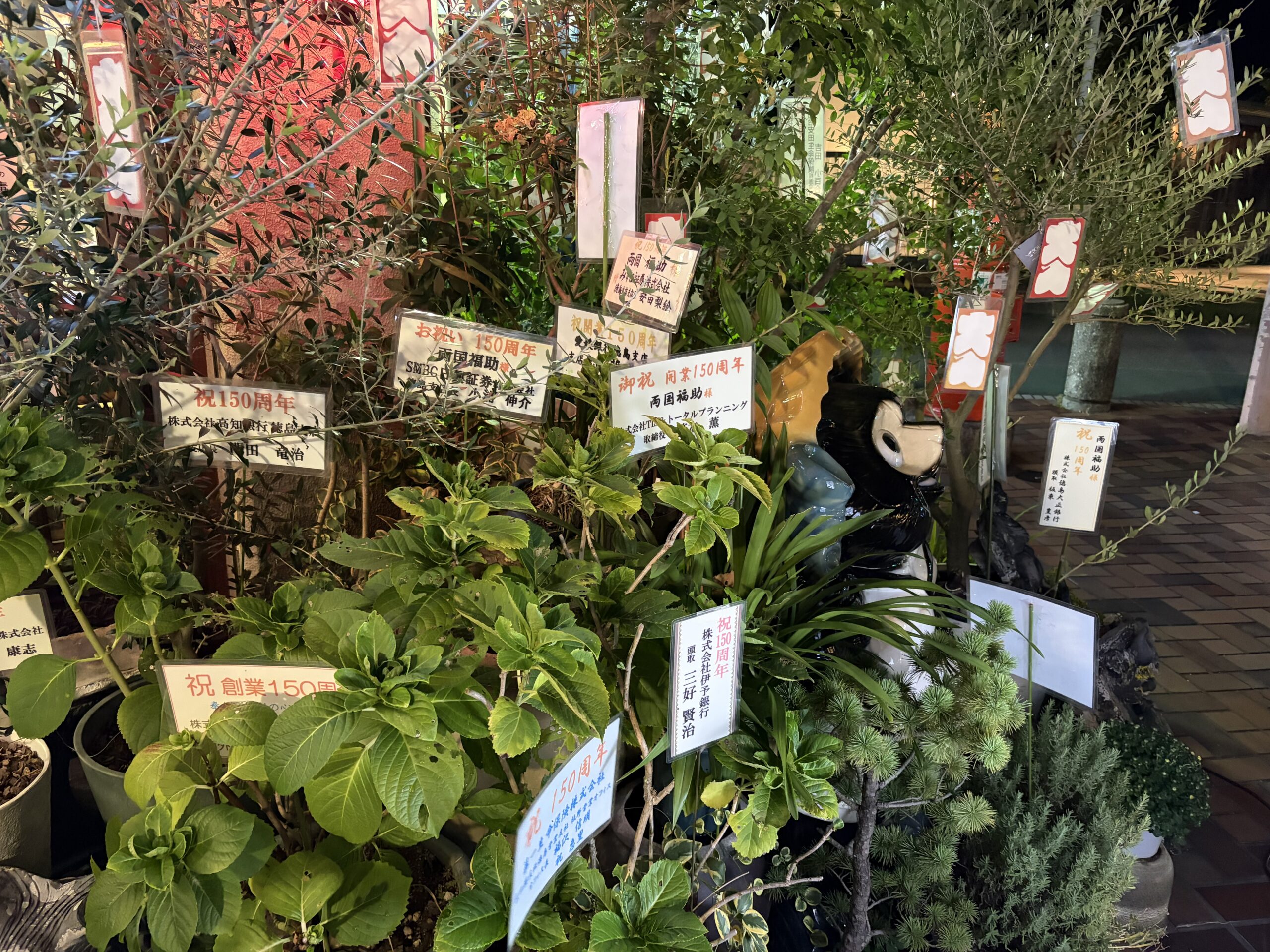 お祝いの花に刺さっていたものなのか創業150周年のフダが鉢植えにたくさん刺さっていました。それにしても創業150周年の食堂も珍しいと思います。