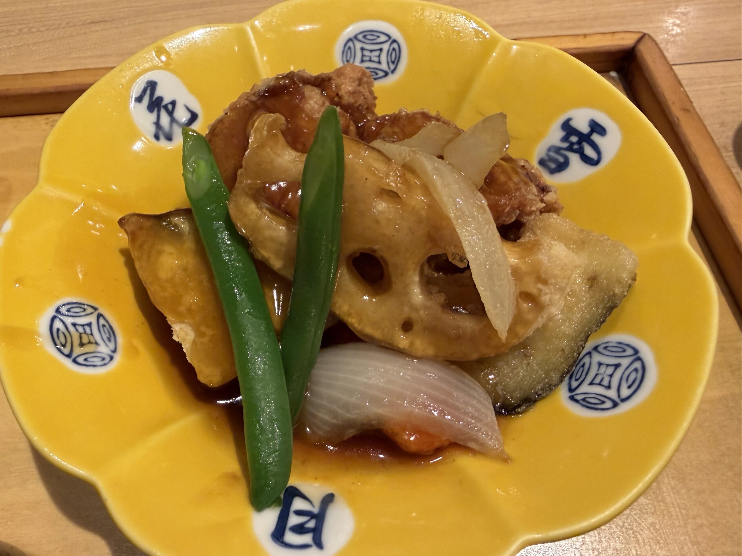 こちらは鶏と野菜の黒酢餡かけ。熱々で美味しくいただきました。