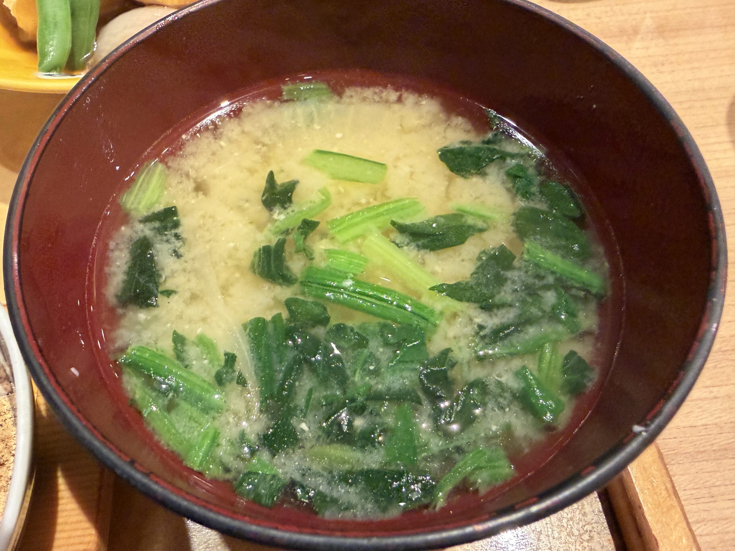 具沢山の味噌汁は野菜メインで、優しい味わいになっています。