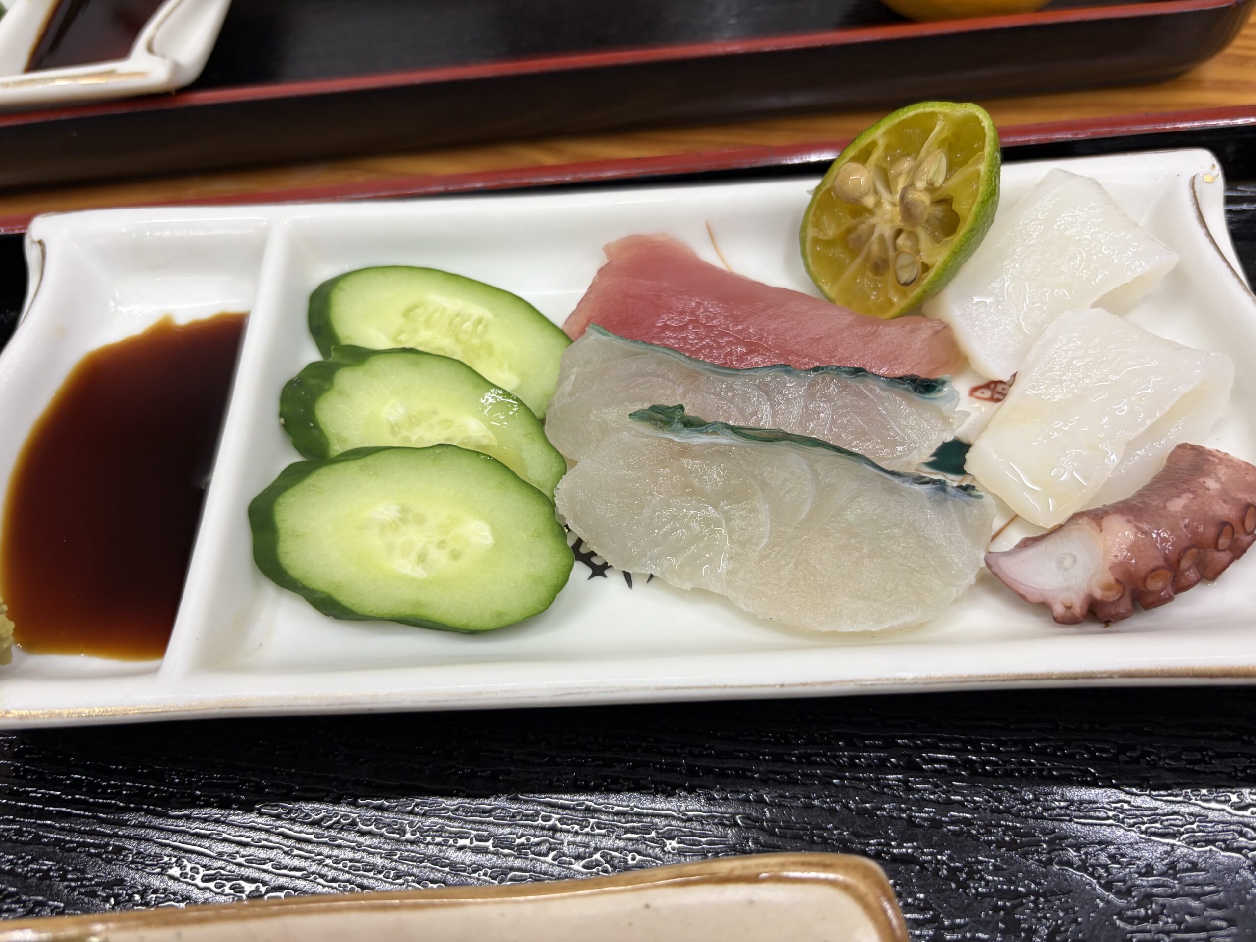 刺身は鮪に烏賊に蛸、青い皮目の魚は何か分かりませんでしたが、どれも美味しくいただけました。