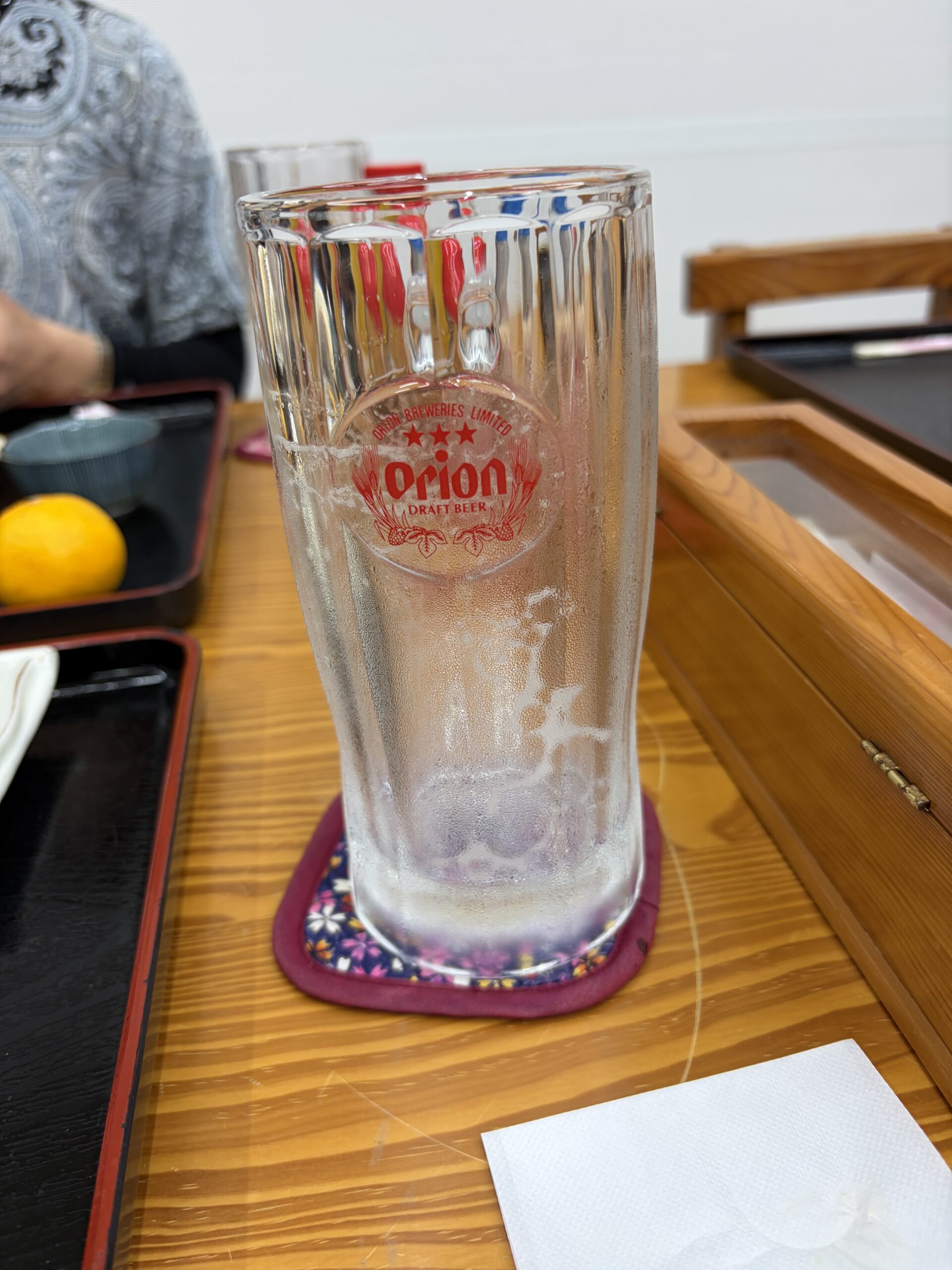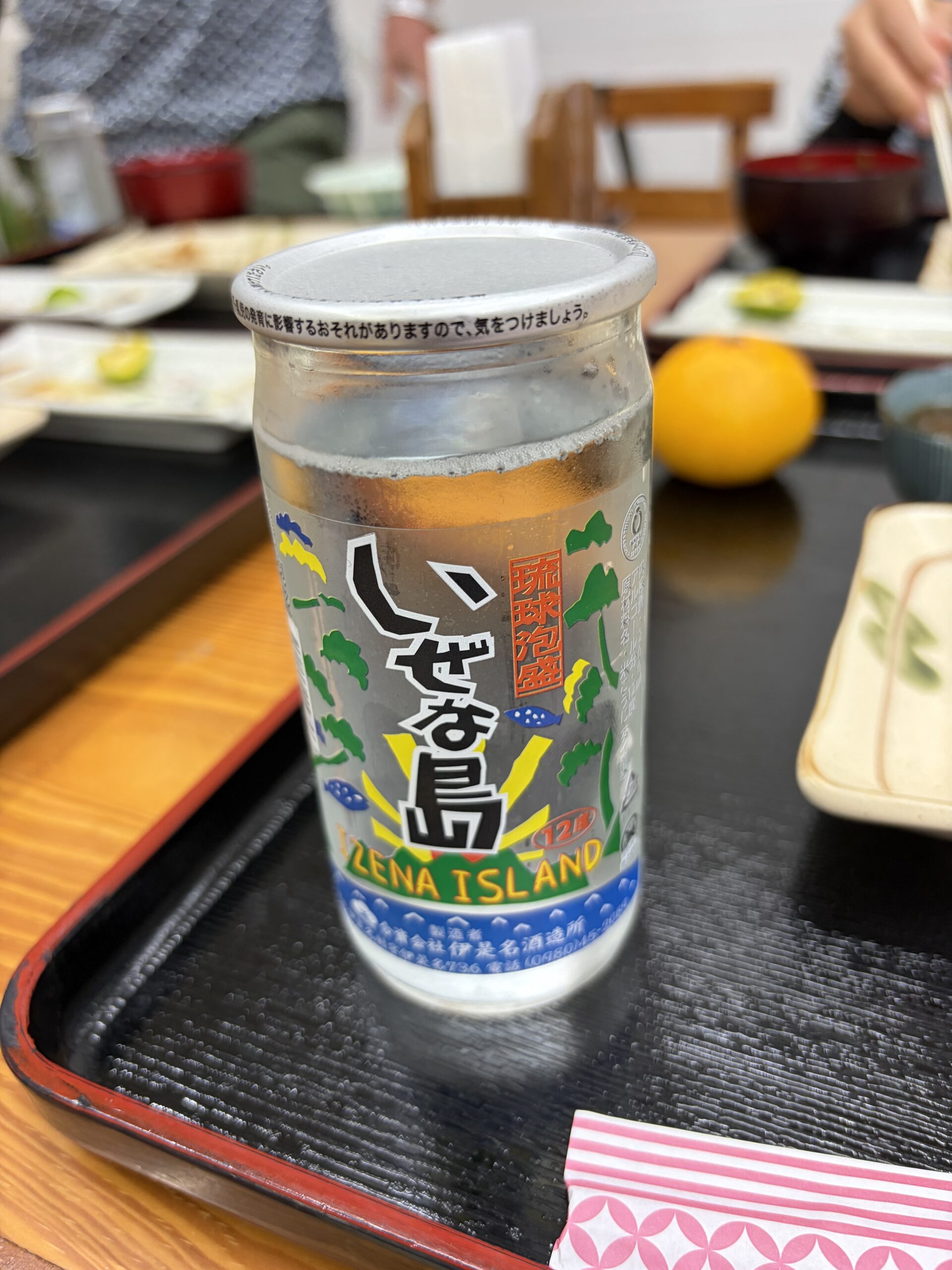 生ビールは置いてあるというので一杯だけいただきました。泡盛はないかと聞くと自動販売機にカップ酒があるとのこと。伊是名の泡盛がありました。フルーティーな泡盛で美味しくいただくことができました。