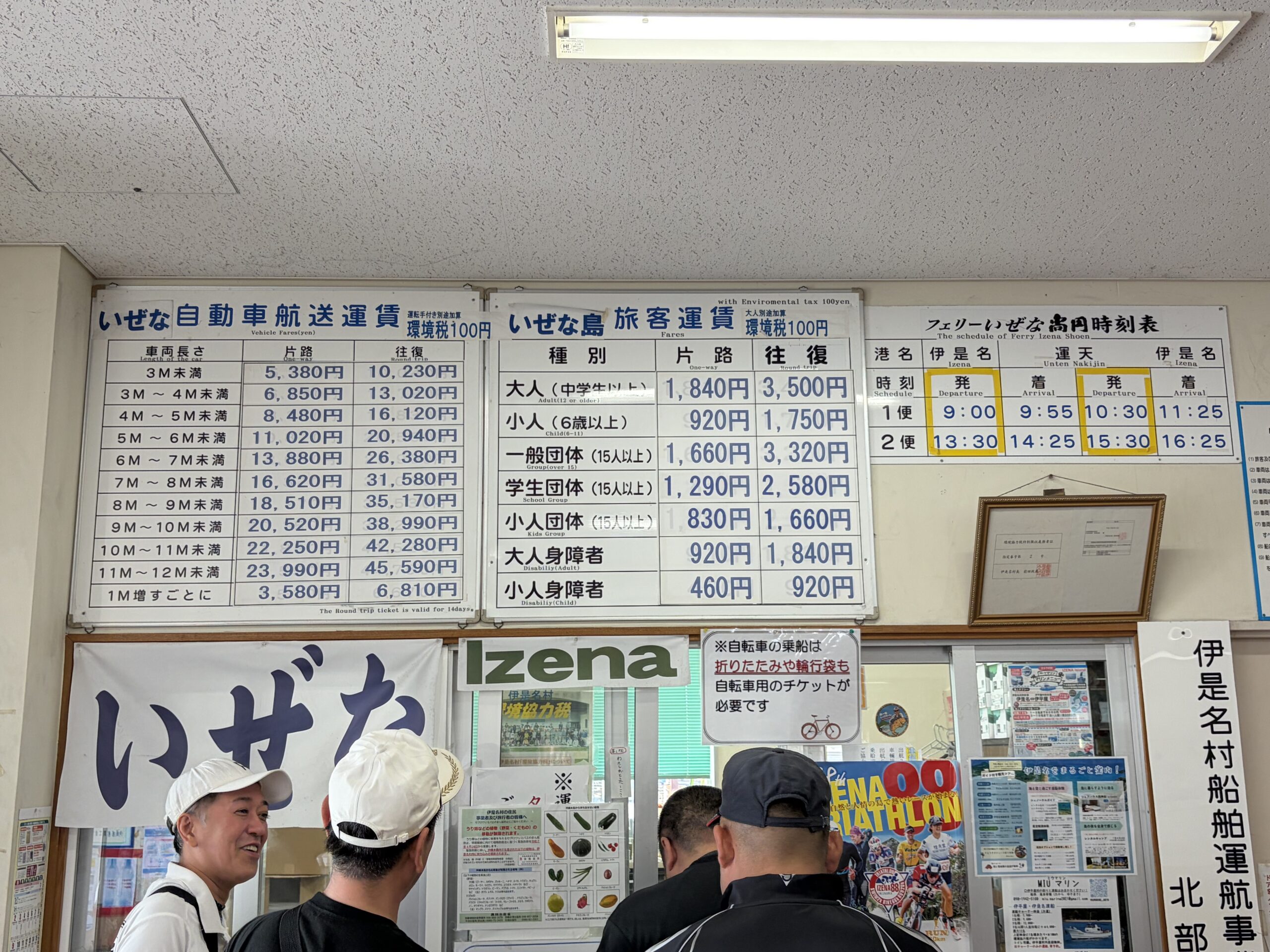 ターミナルの中に入ると乗船券売り場がありました。この反対側に伊平屋島行きフェリーの乗船券売り場がありました。釣り客と思われる方々も多くいらっしゃいました。