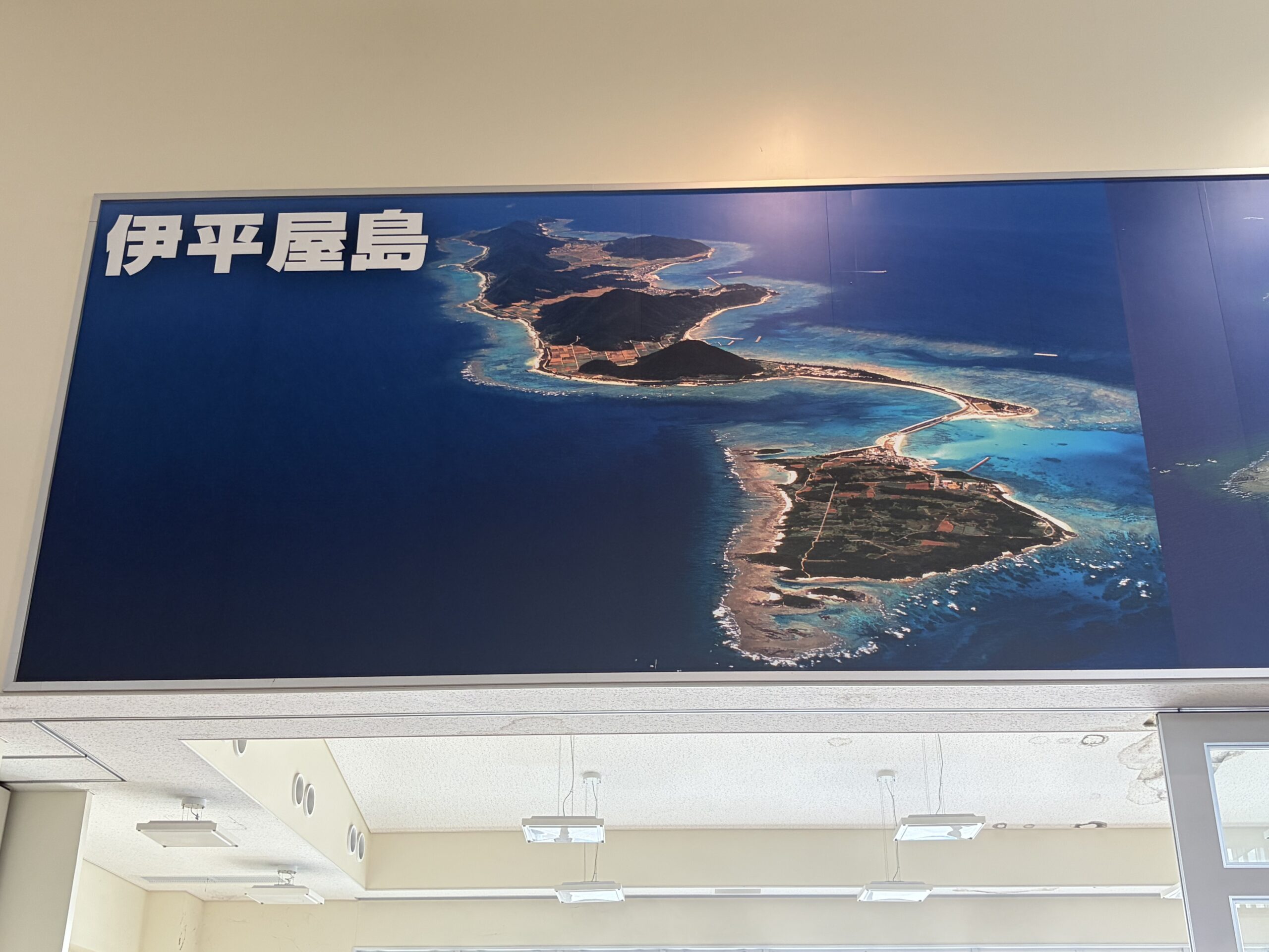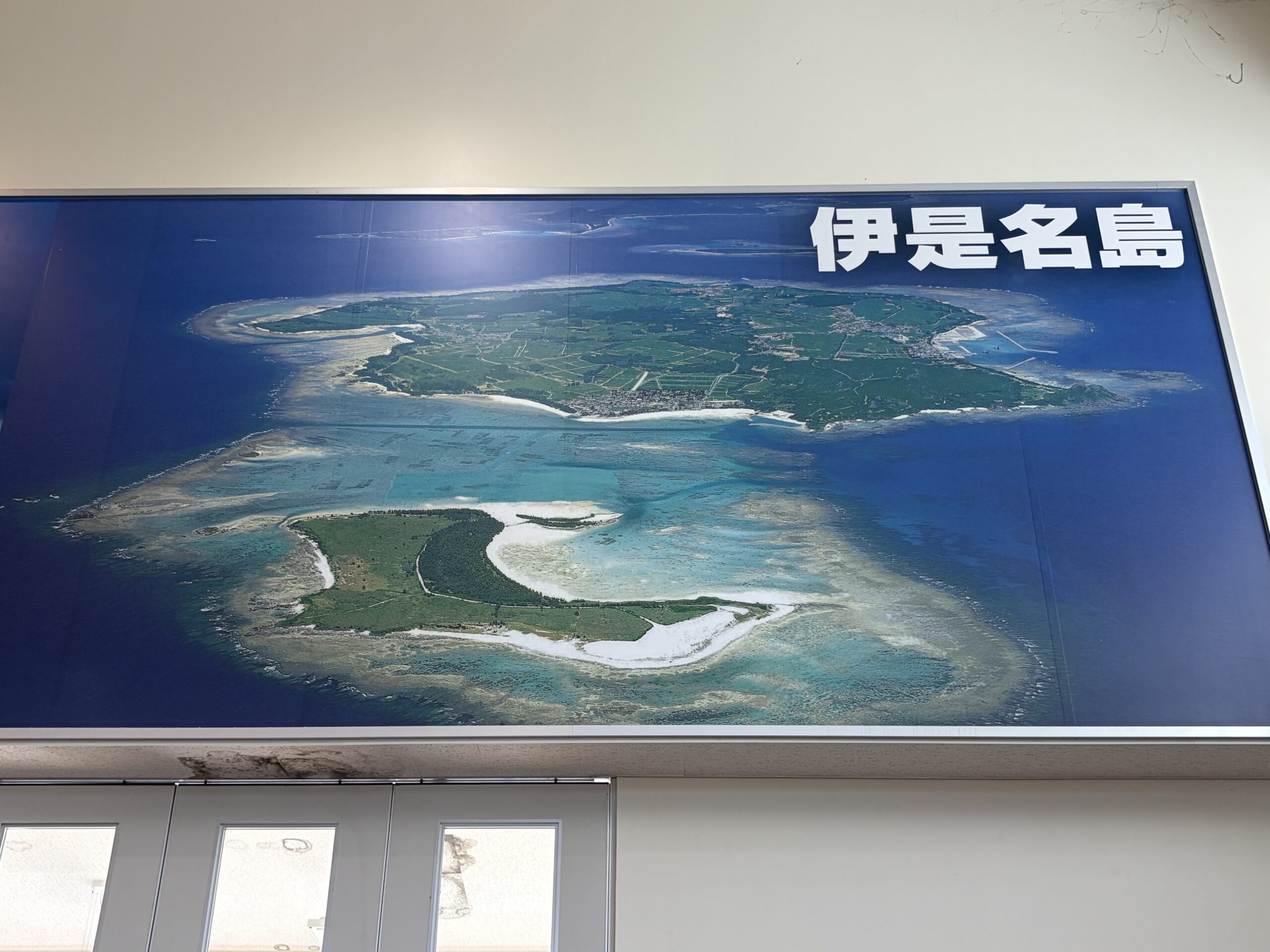 伊平屋島と伊是名島の大きな航空写真も飾られていました。