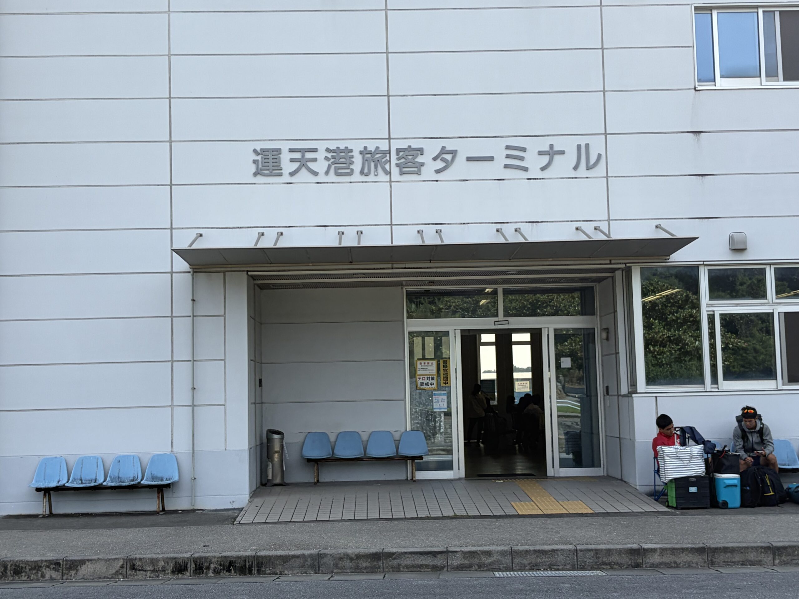 ターミナルのすぐそばに今日の宿「民宿 美島」が見えます。