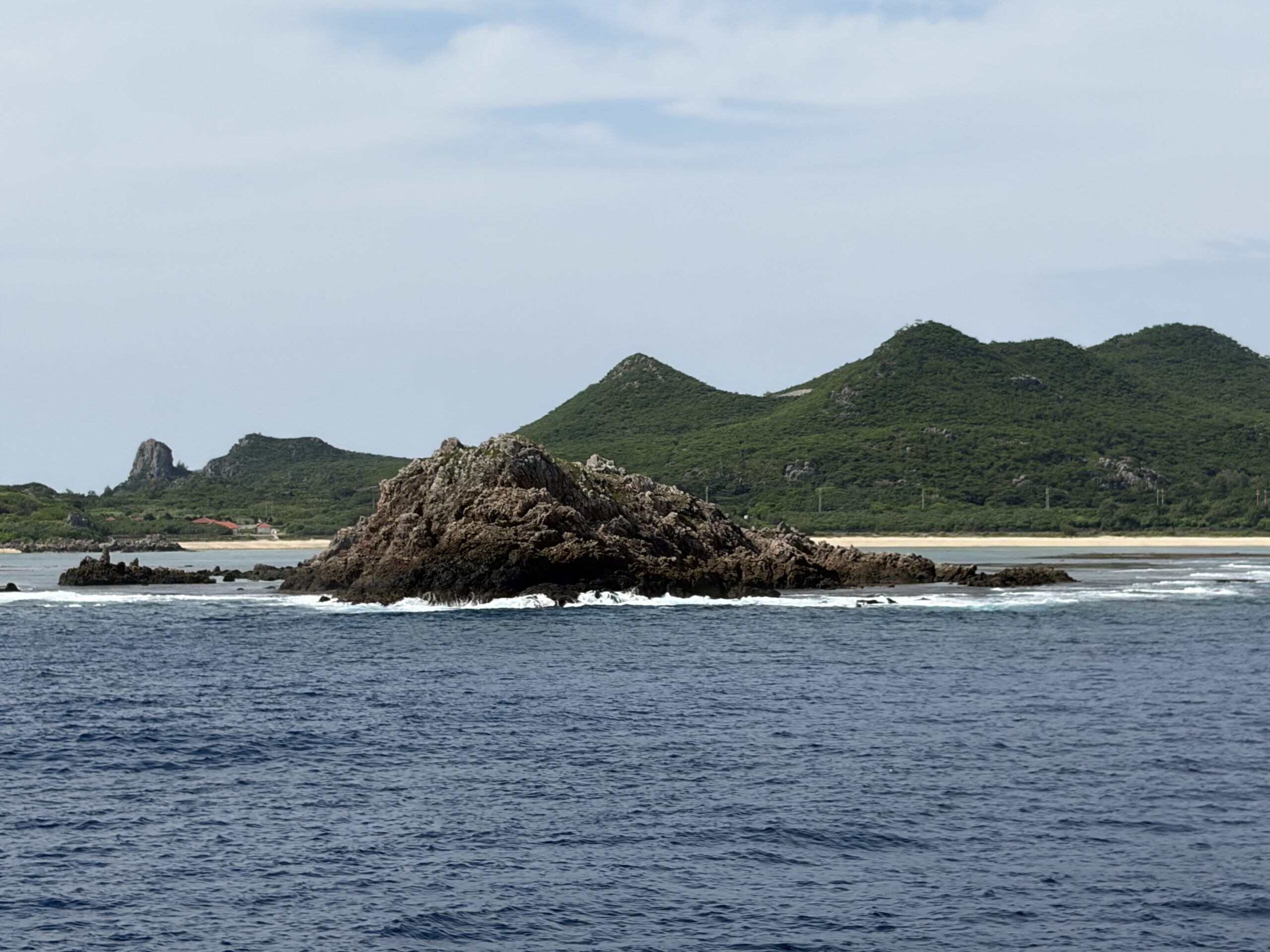 少し離れたところに平らな島がありました。航空写真にも写っていた屋那覇島でしょう。