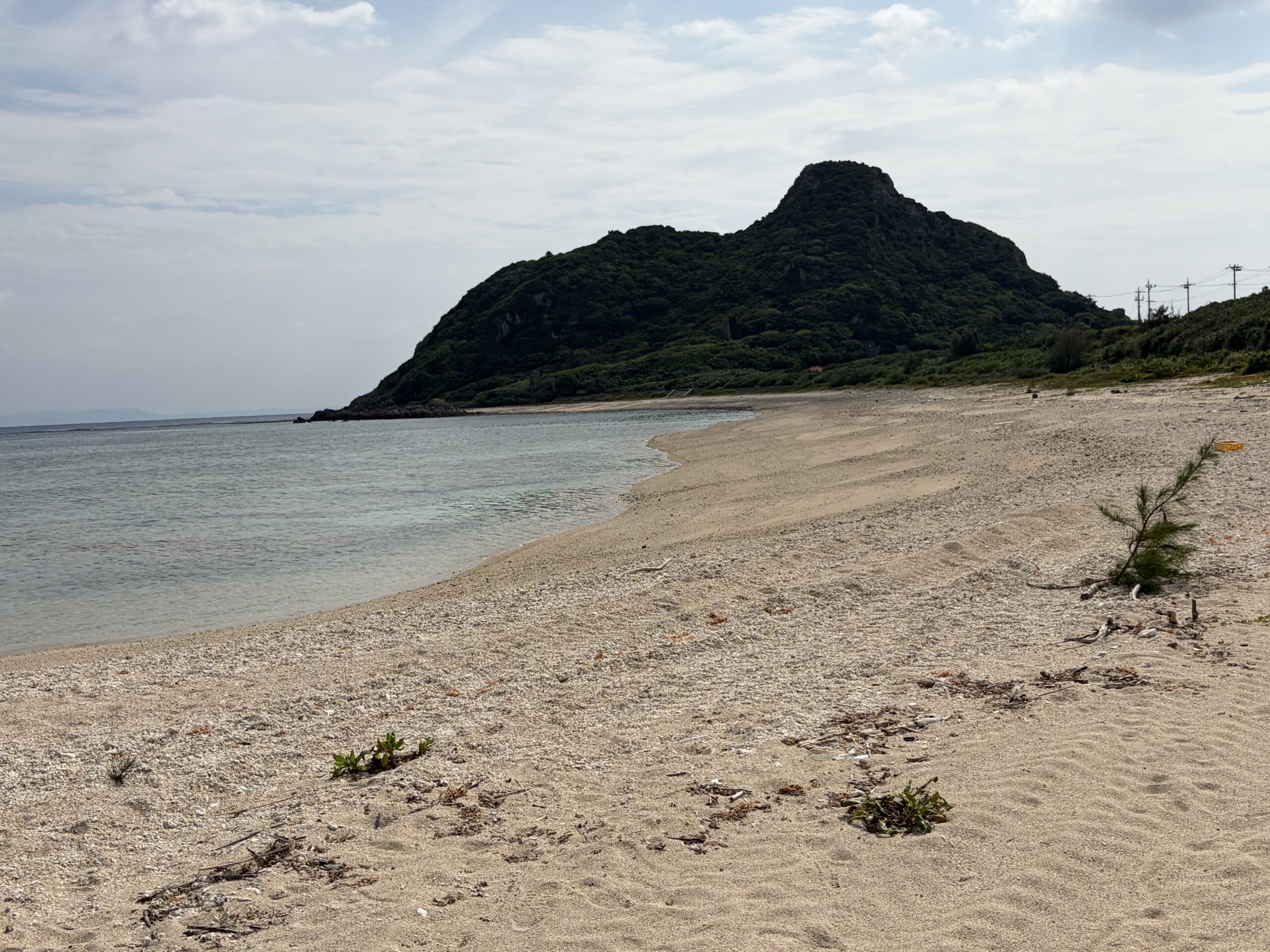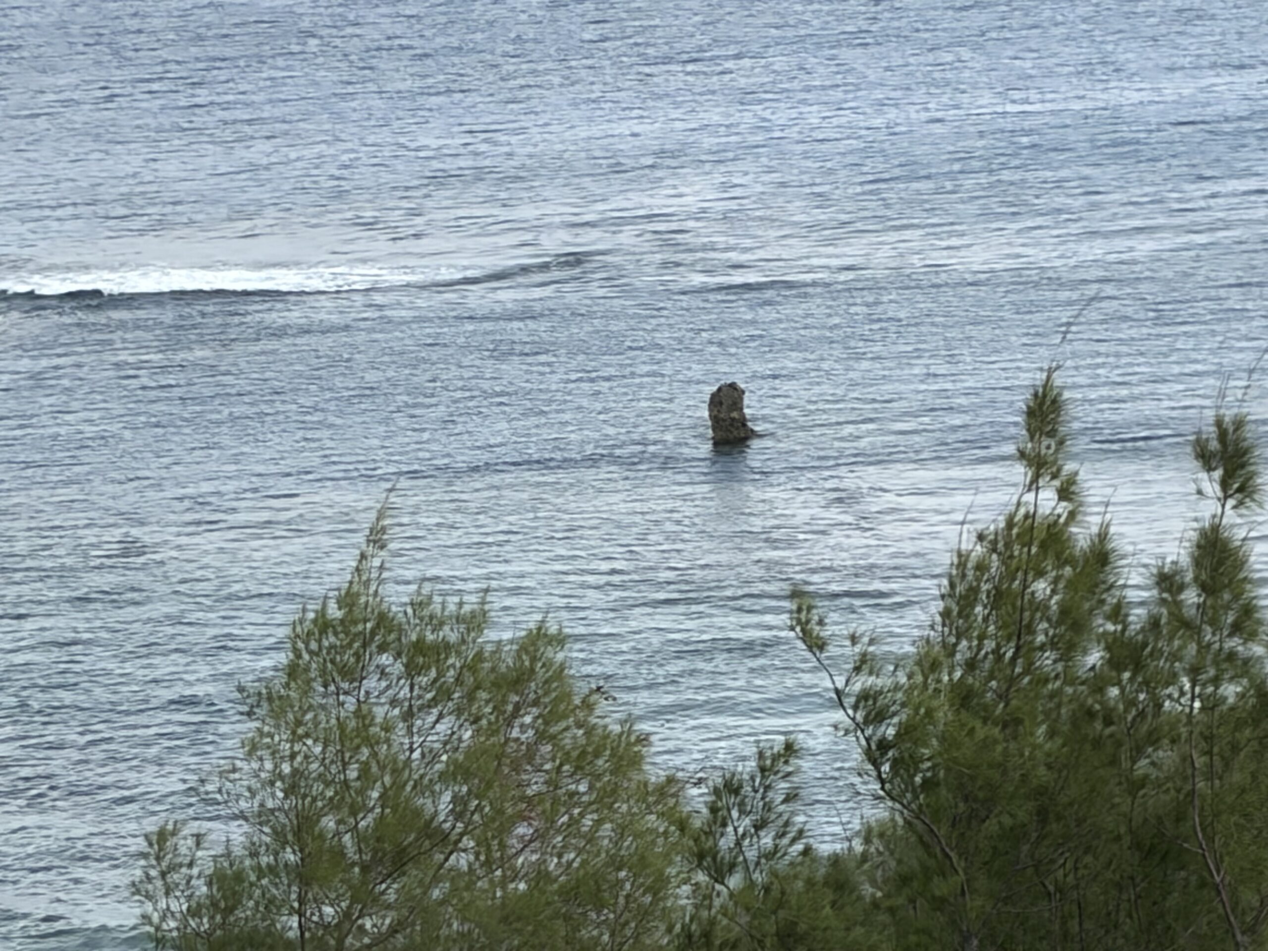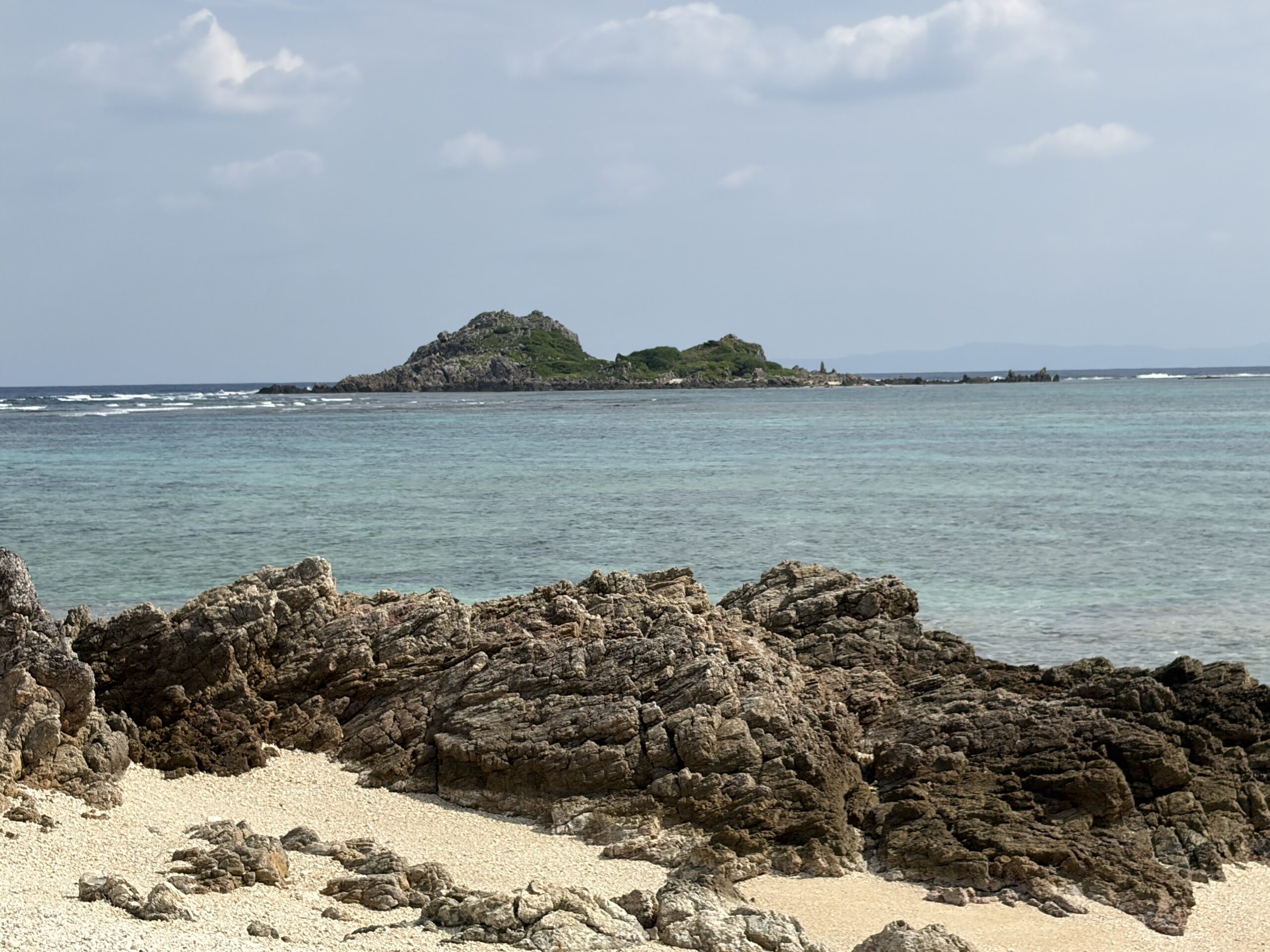 屋那覇島の右側には国頭の伊江島と聳え立つタッチューを見ることができました。タッチューも岩が突き出たものなのでこの島と同じような地質になっているのかもしれません。