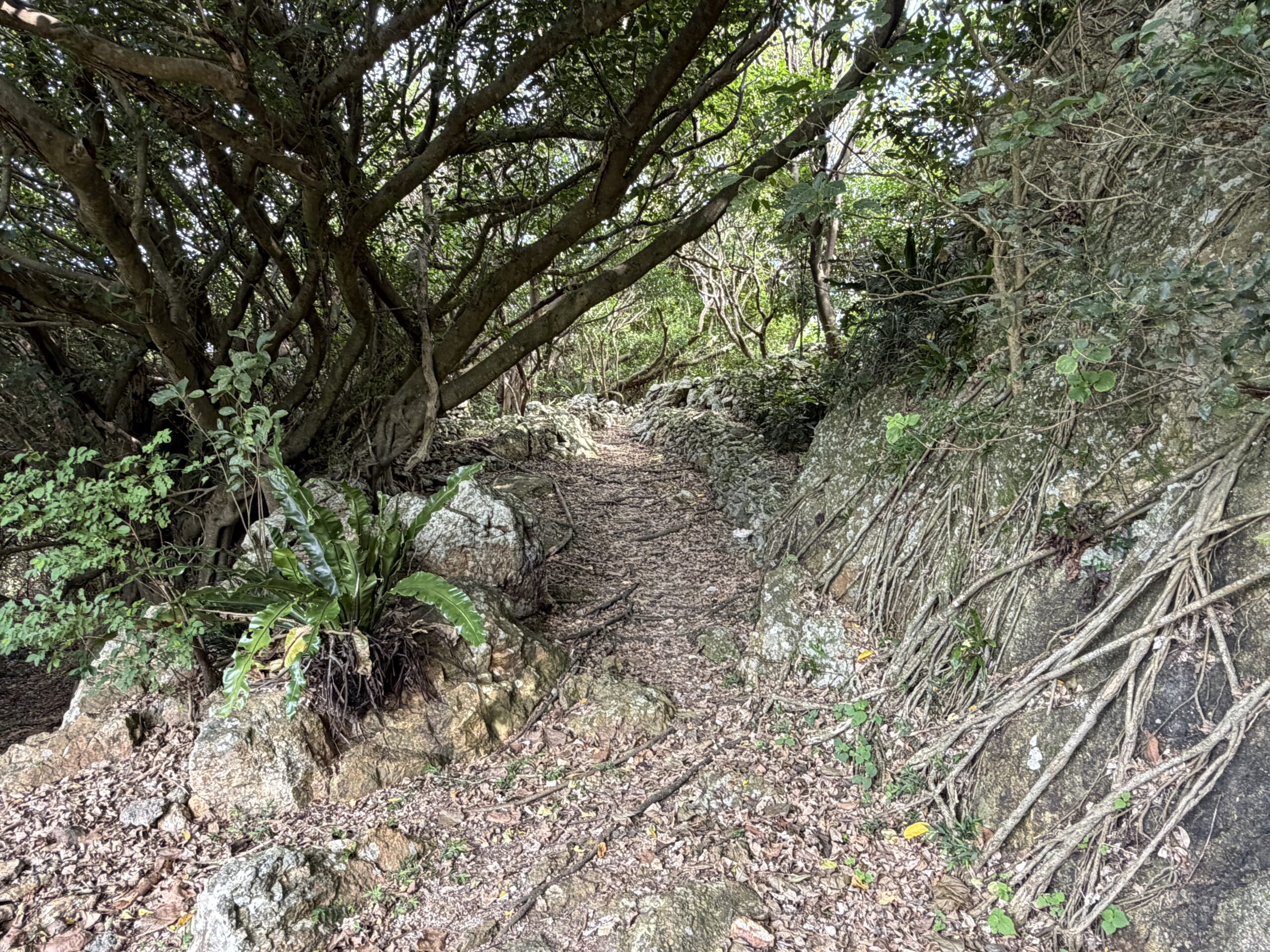 伊是名城趾に登っていくと思われる道もありました。途中まで歩きましたが到底登れないので引っ返すことにしました。
