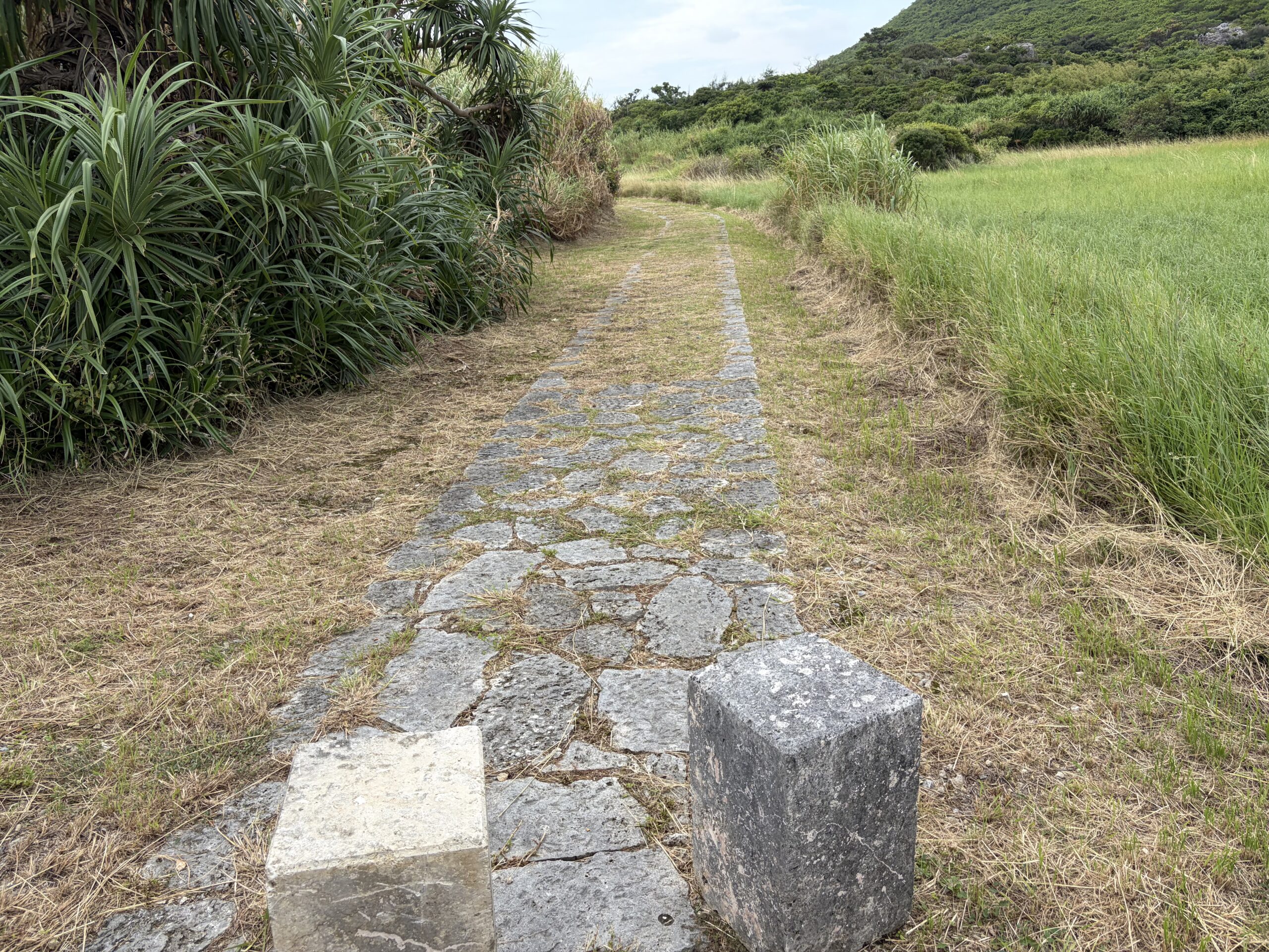 名前からはかつて侍が歩いた道というイメージでしたが、説明書きを読むと「元島と伊是名南西部を結ぶ唯一の生活道路」だったとのこと。「サムレー」の名は敷石が武士の足形に似ているところから付いたとのこと。