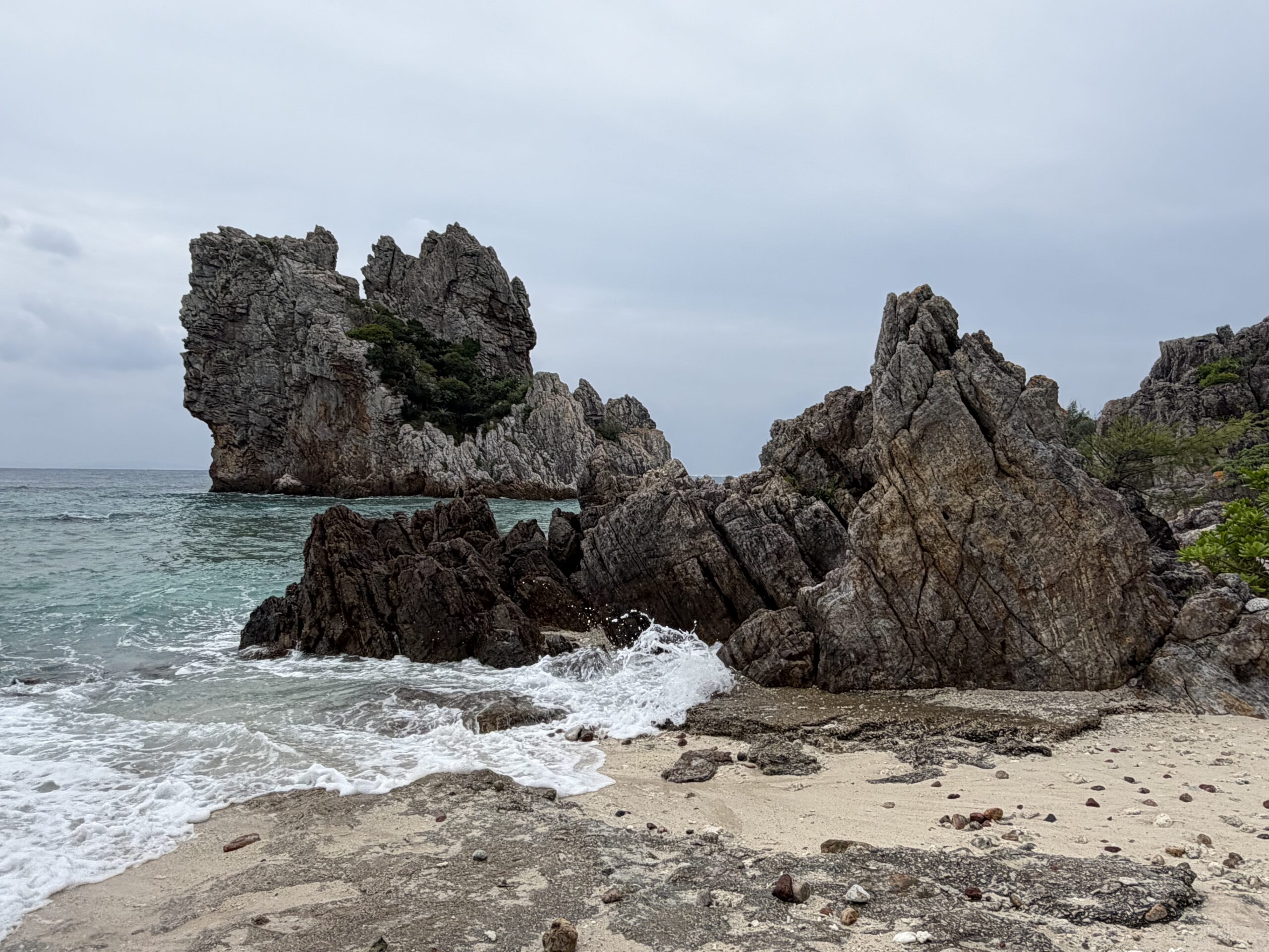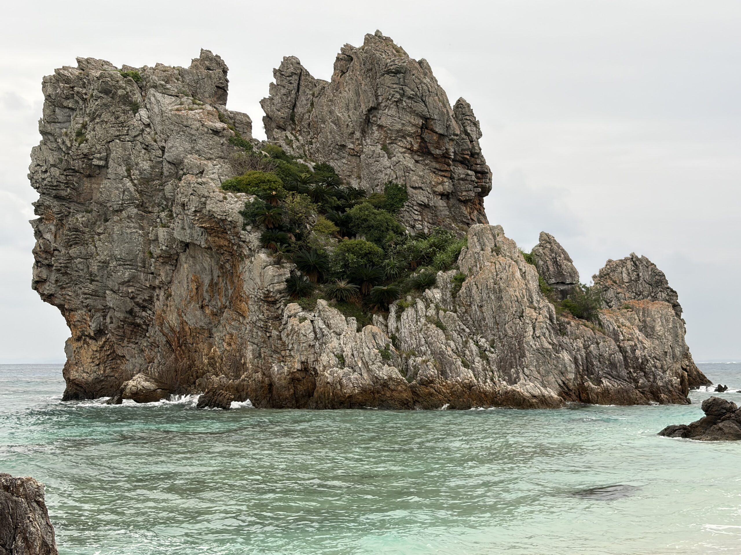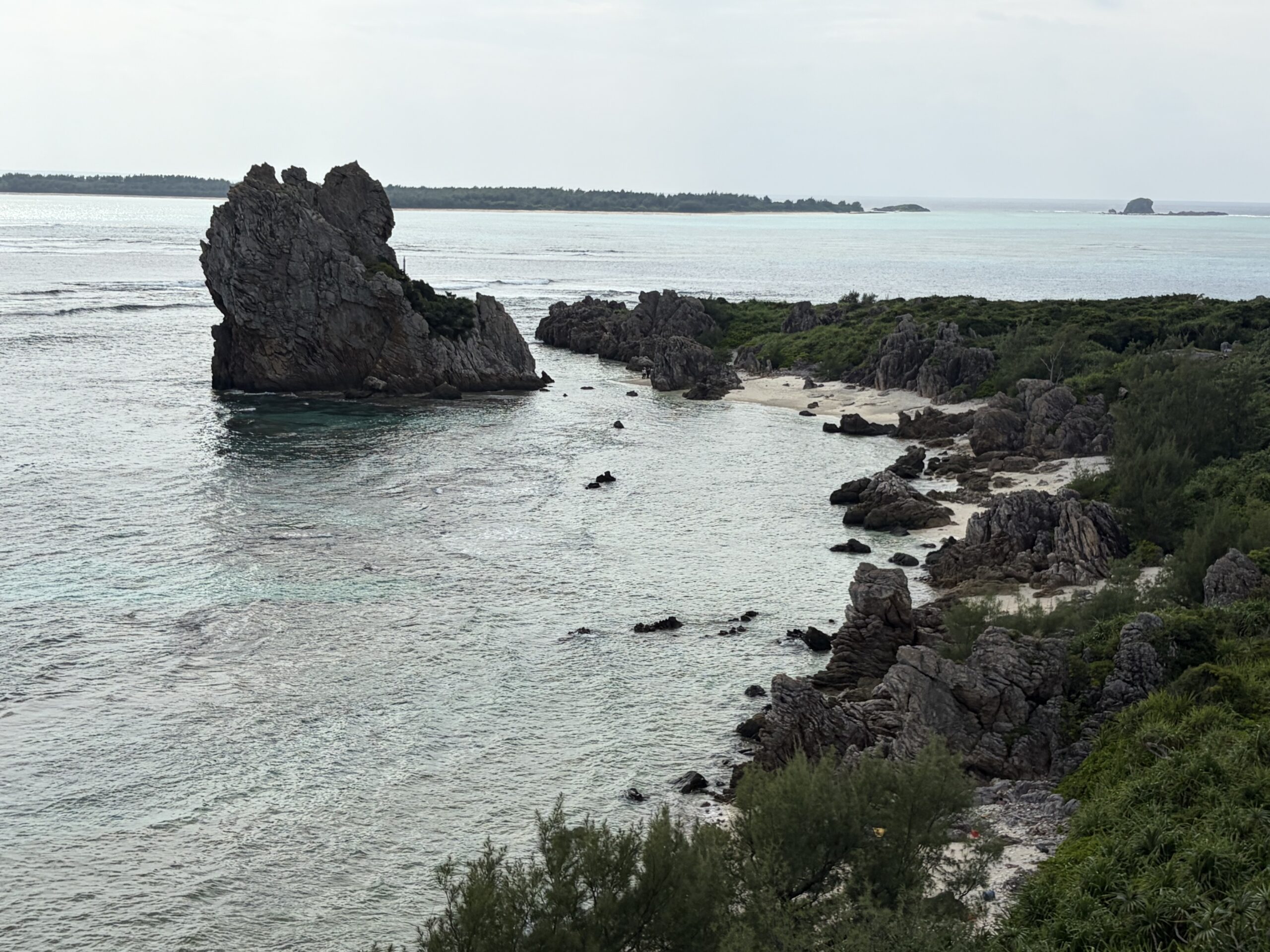 確かに不思議な光景でした。島の南側には海岸沿いに海の中にも岩が露出している所が多くありました。