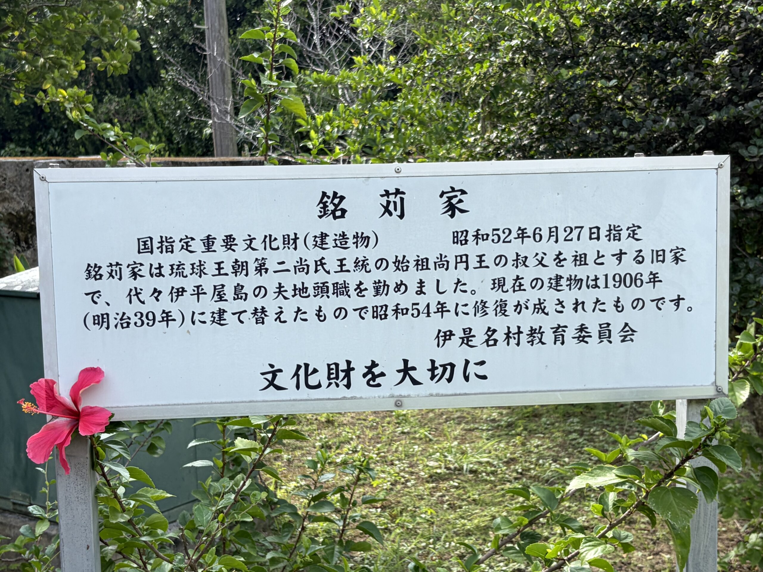 車を進めて伊是名集落に入ると「銘苅家住宅」がありました。