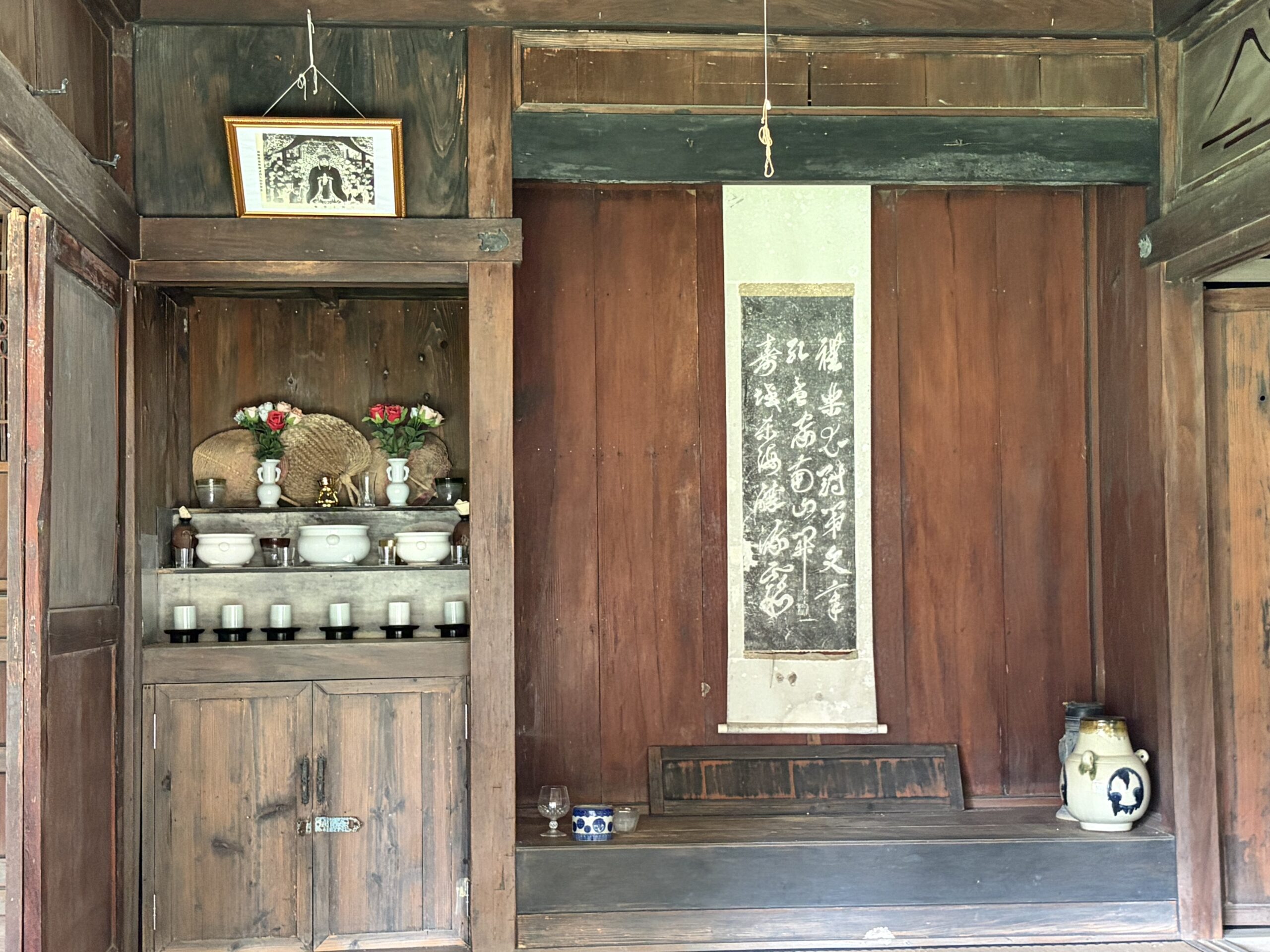 母屋の仏壇と床の間。仏壇の上に御後絵(国王の肖像画)が掲げられています。