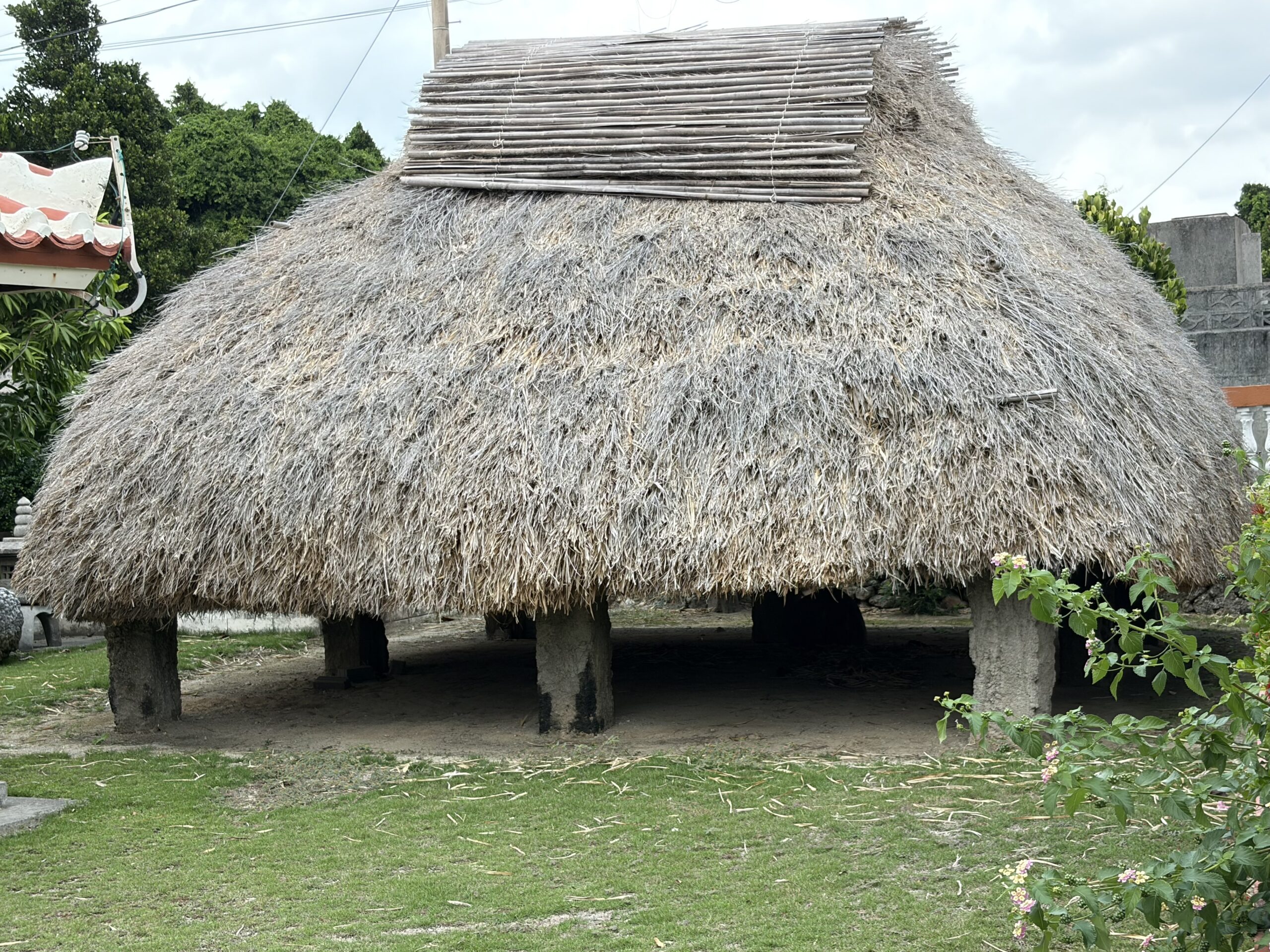 共同売店の駐車場で簡単な昼食を済ませ、次の行き先を考えていると「仲田区の文化財」と書かれた看板が目につきました。この近くに「仲田の神アサギ」と呼ばれる建物があるようなので行ってみることにしました。