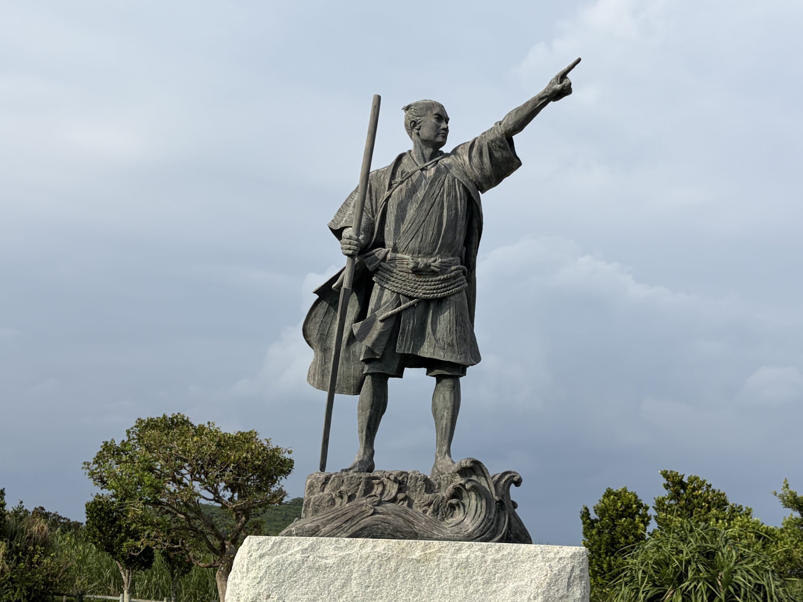 台座の説明にあるように伊是名島を出て本島に向かう金丸の強い意志を表しているようです。