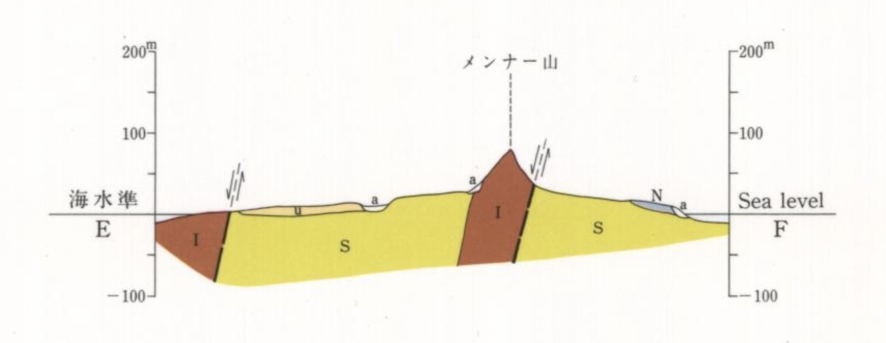 地質図に引かれたE・F、G・Hの断面図は以下のとおりです。