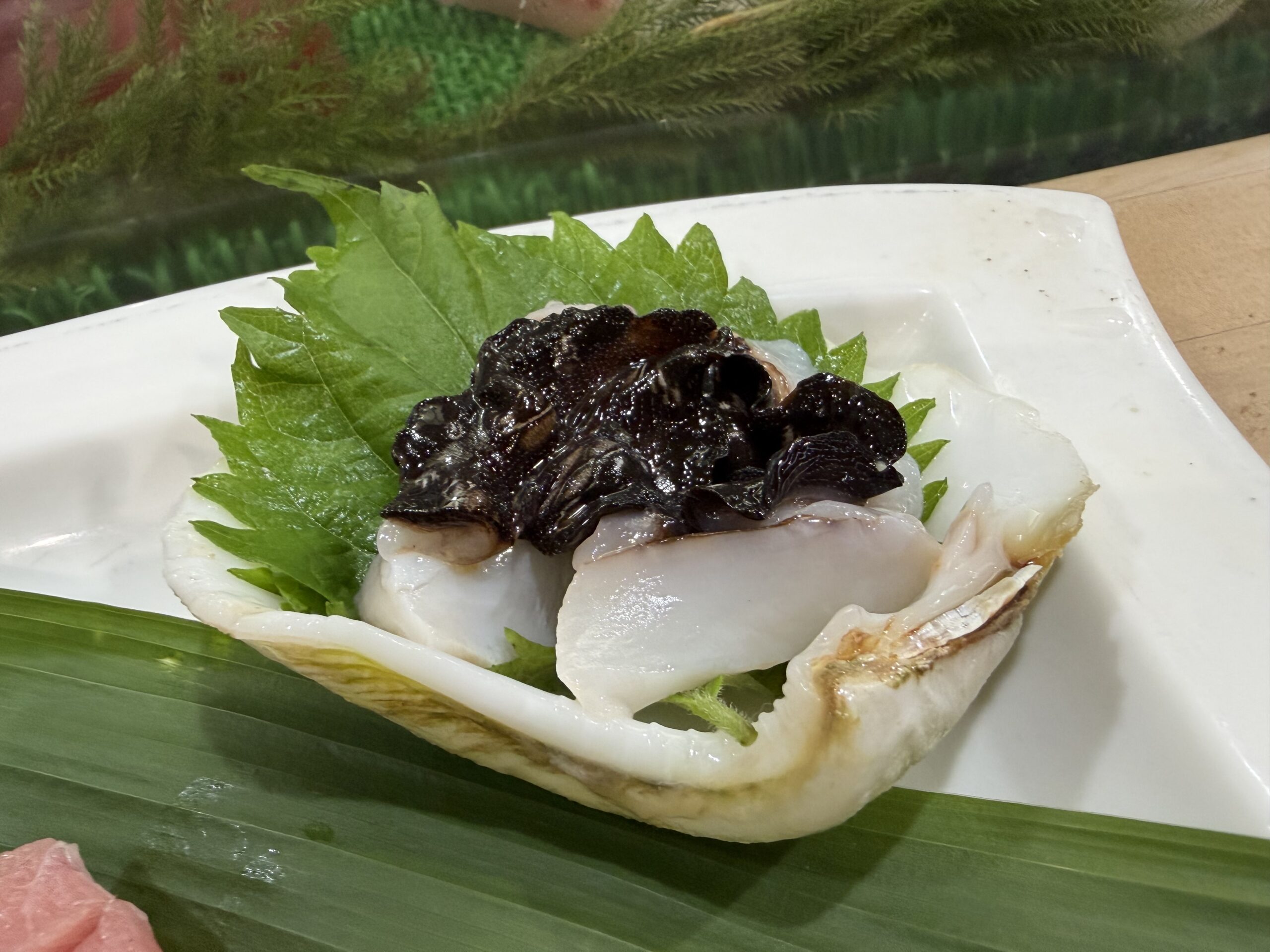 独特の香りとコリコリとした食感が堪りません。家内は食べないので家内の分もいただきました。