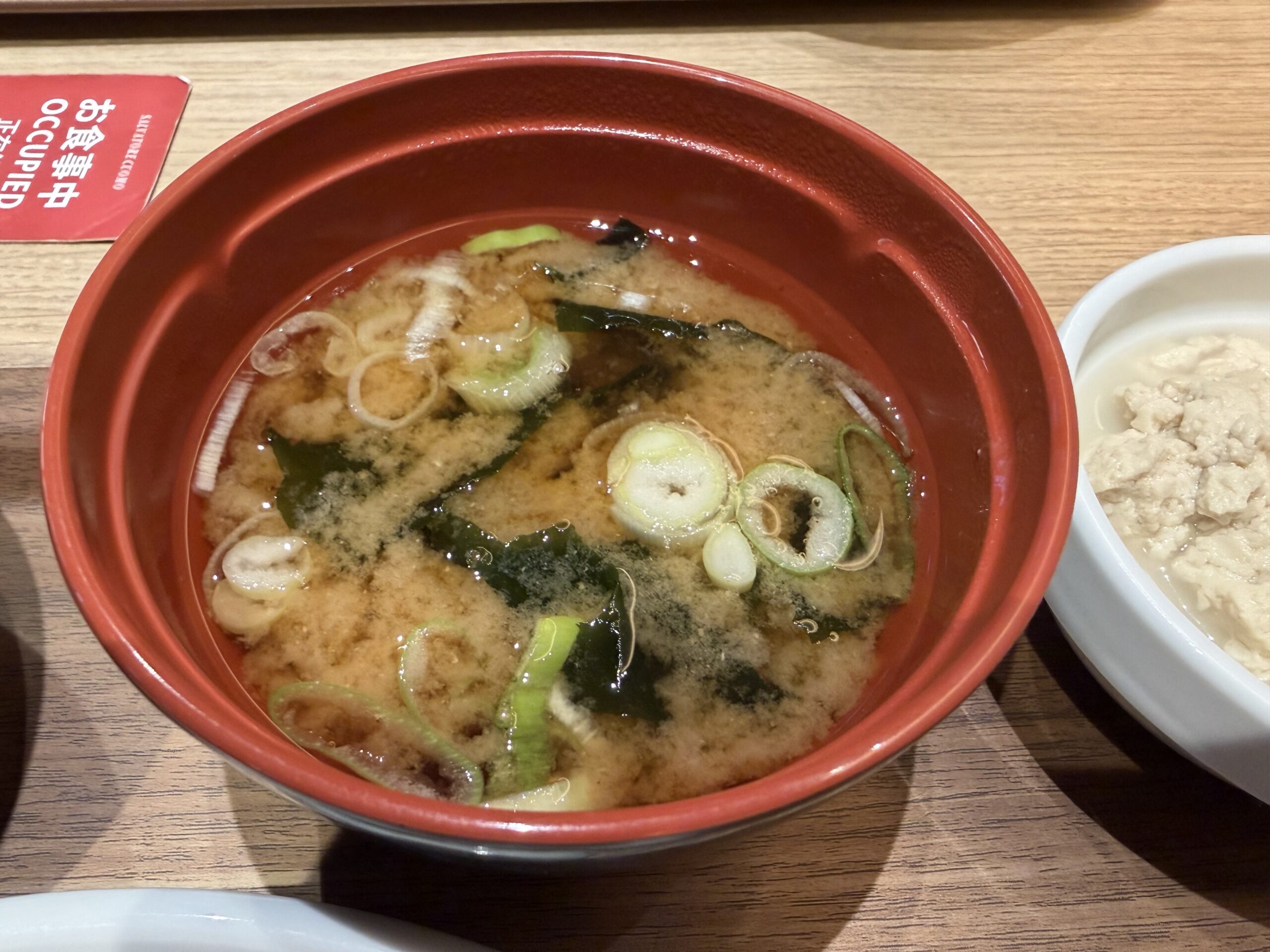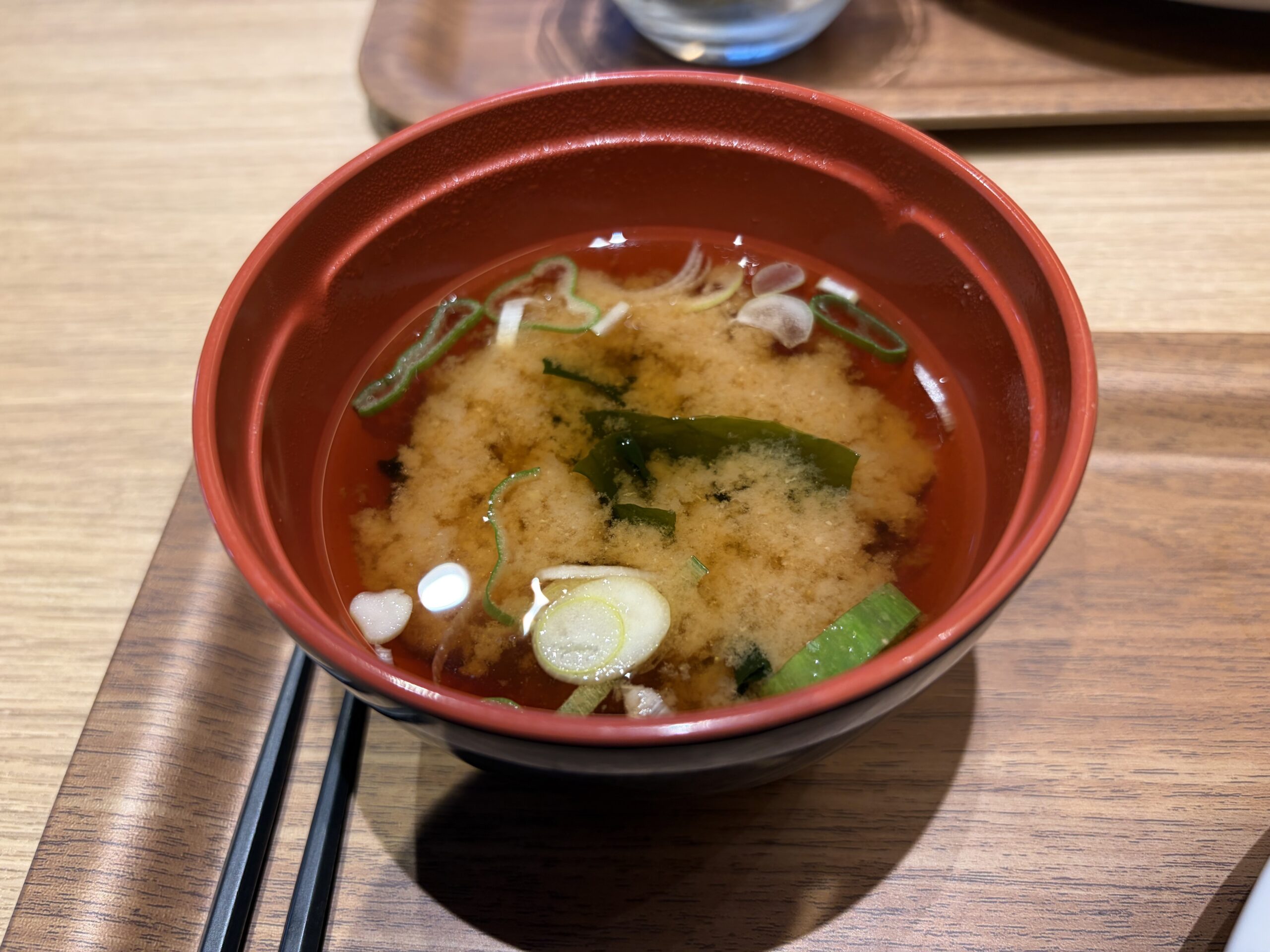 味噌汁は薄味でした。これに納豆と味付け海苔でいただきました。