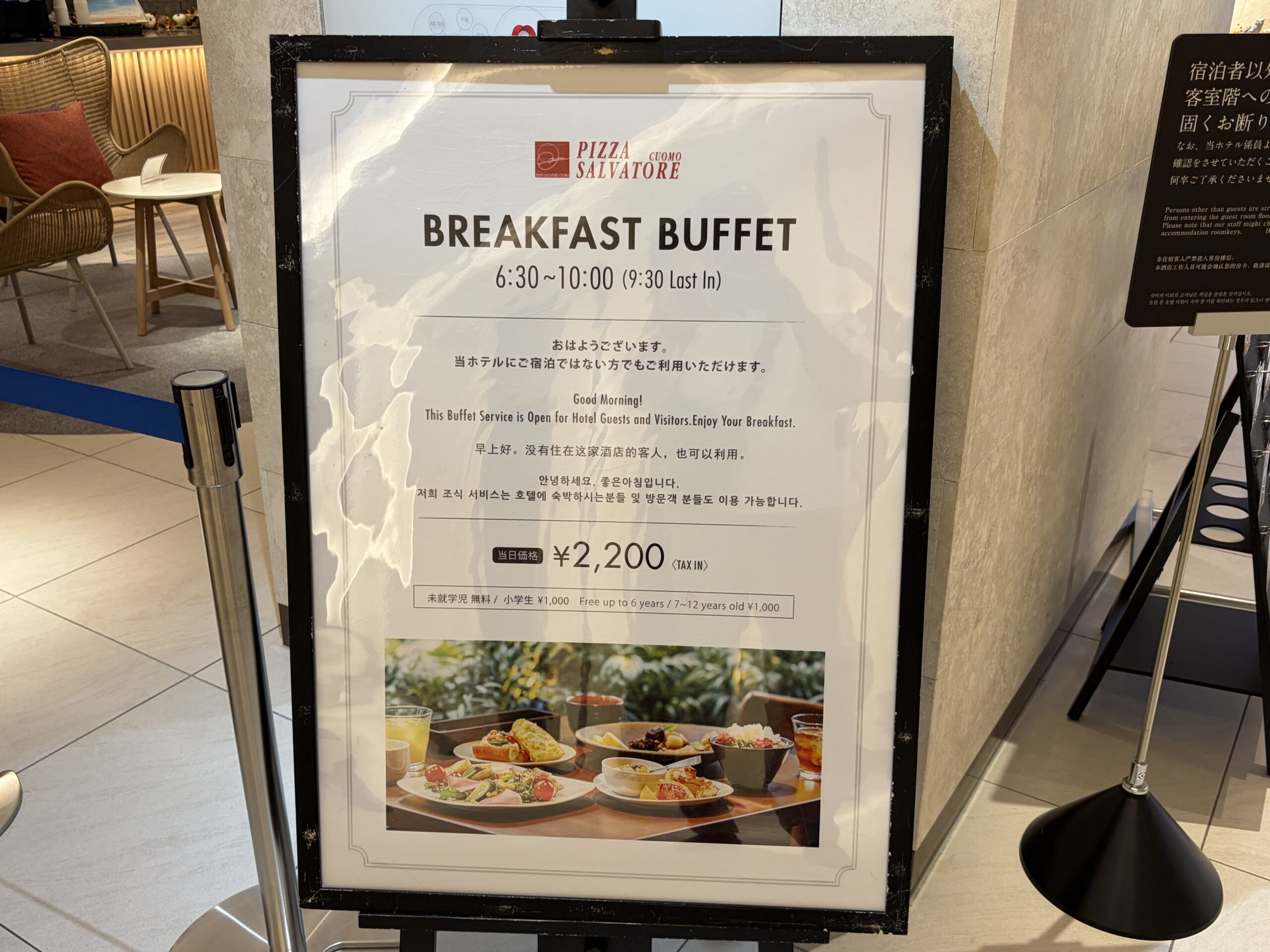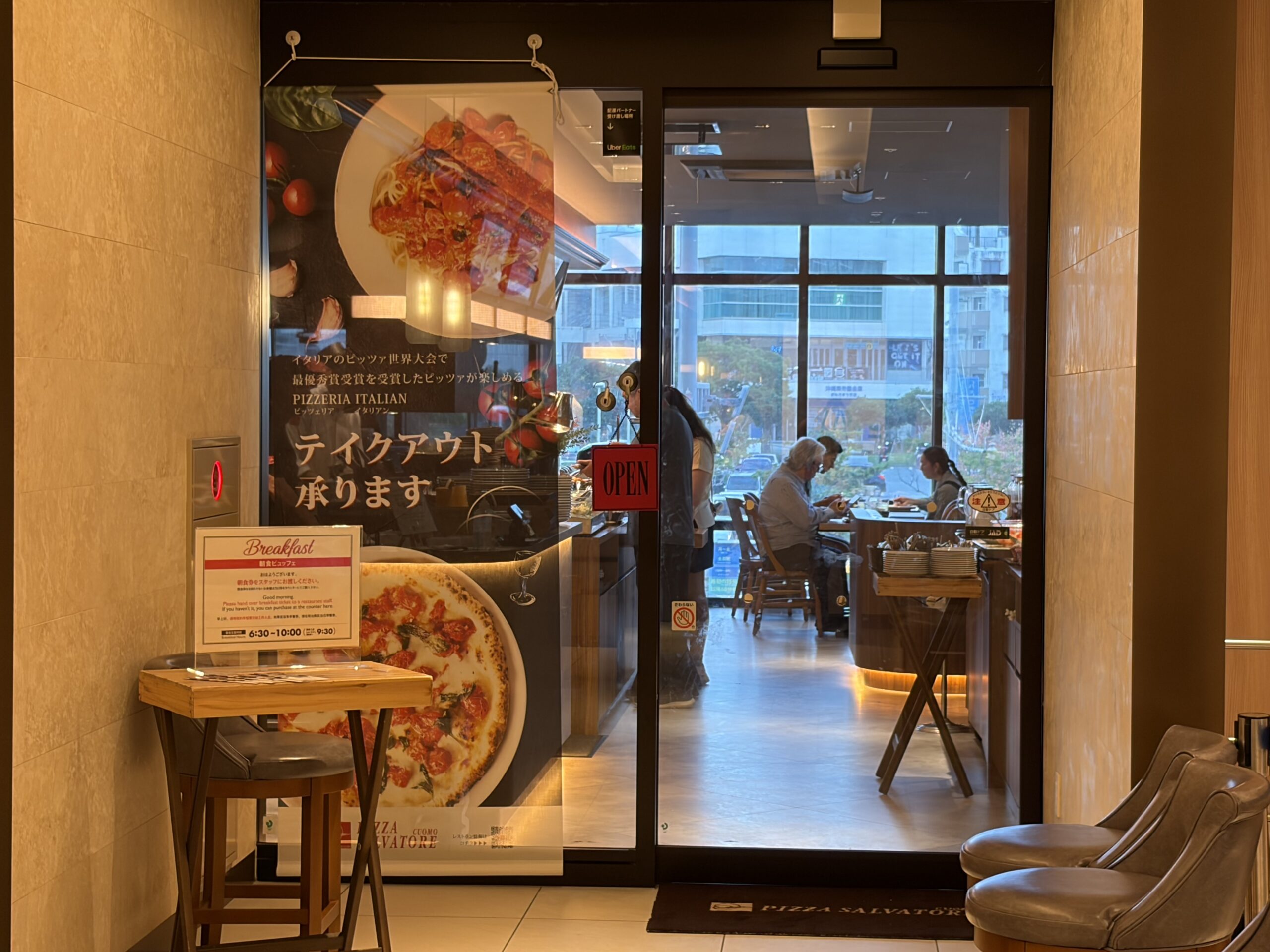 今回の沖縄旅行での那覇の宿泊は「ダイワロイネットホテル那覇おもろまちPREMIER」で三泊(10月31日、11月3日、11月4日)しました。朝食会場はホテル2Fの「PIZZA SALVATORE CUOMO」です。