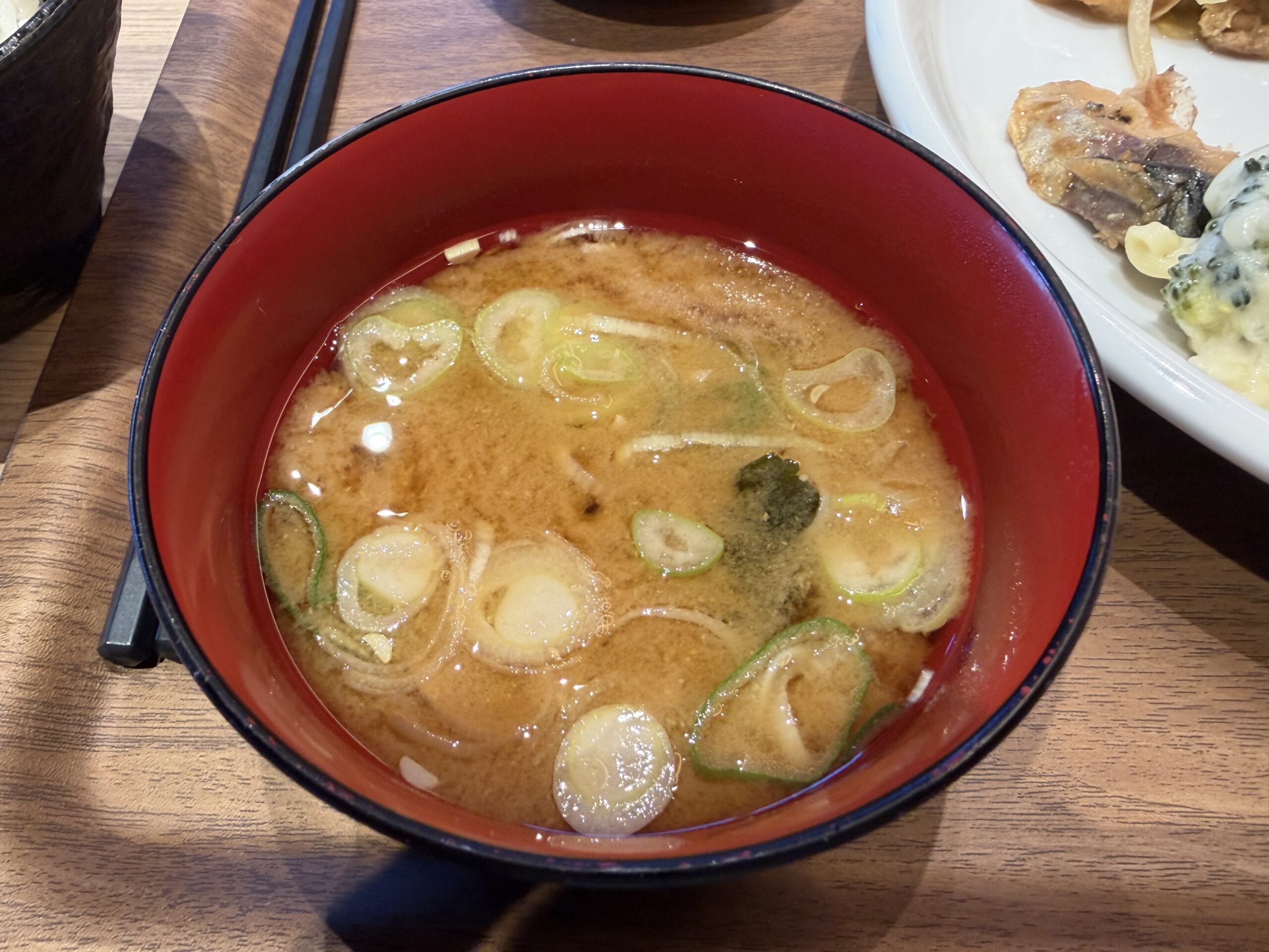 味噌汁は前回と味噌が違っていました。家内曰く首里味噌とのこと。写真には写っていませんが納豆と味付け海苔もいただきました。