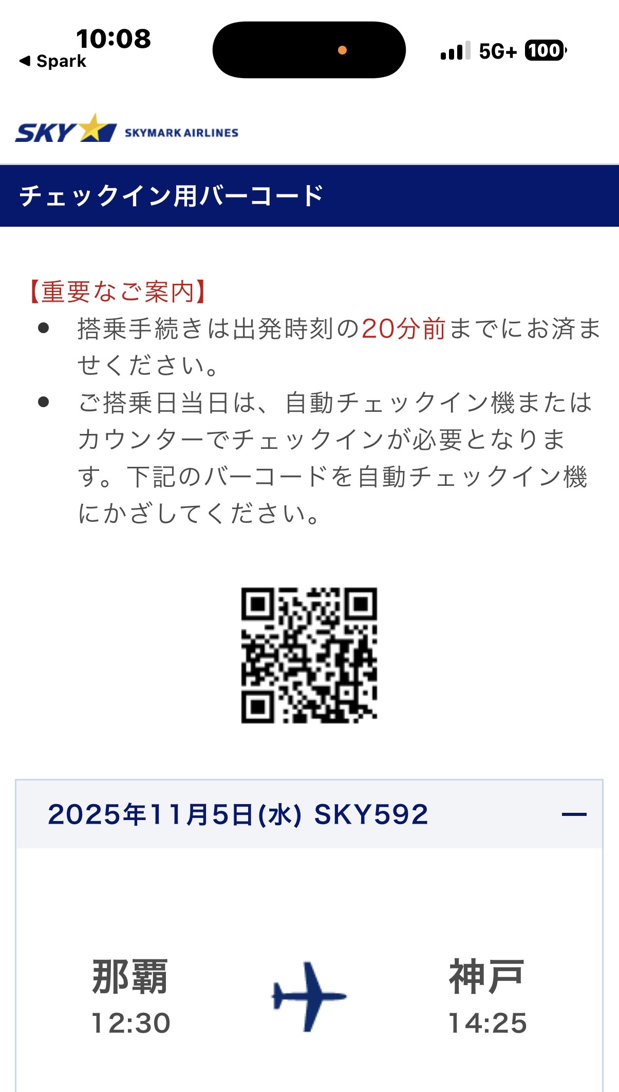 搭乗機の到着遅れがあって出発が15分遅れになりましたが、神戸空港には10分遅れで到着しました。神戸空港での高速バス乗り換えの間も余裕を見ていたので問題になるような遅れではありませんでした。
