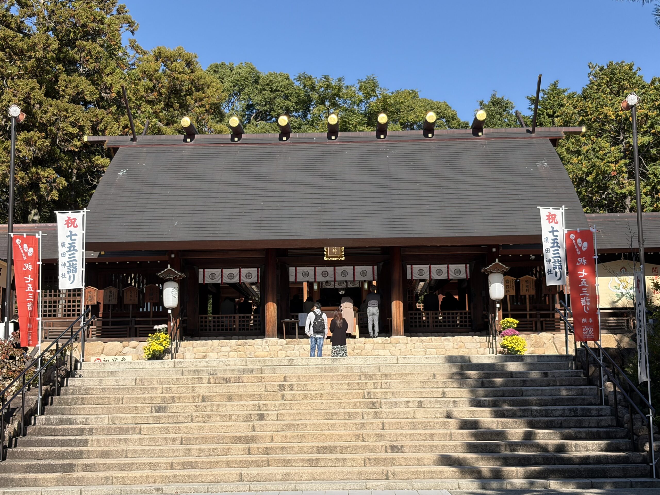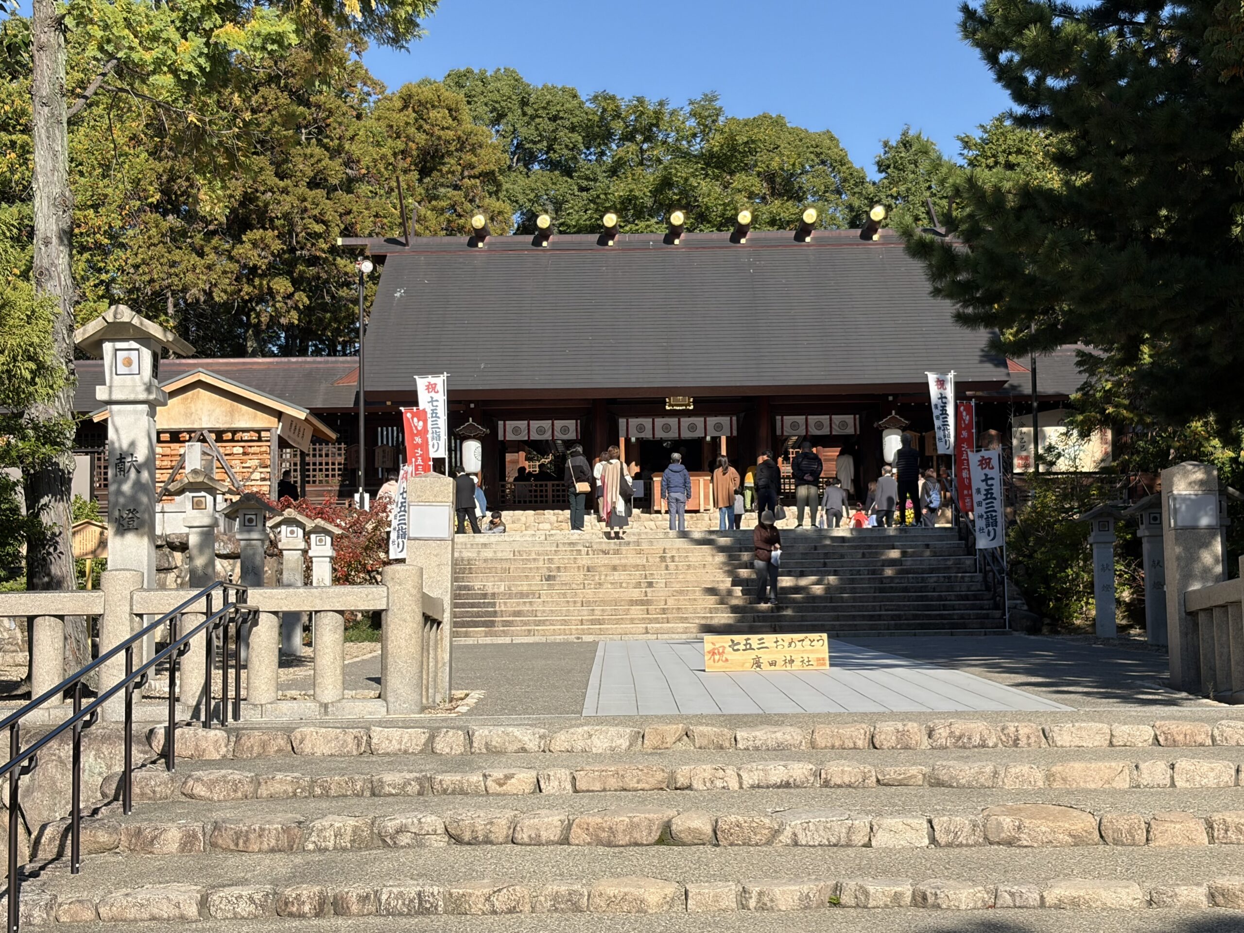 廣田神社に孫#7の七五三詣に伺いました。西宮はとても良い天気で暖かく、お宮参りに最適の日和でした。