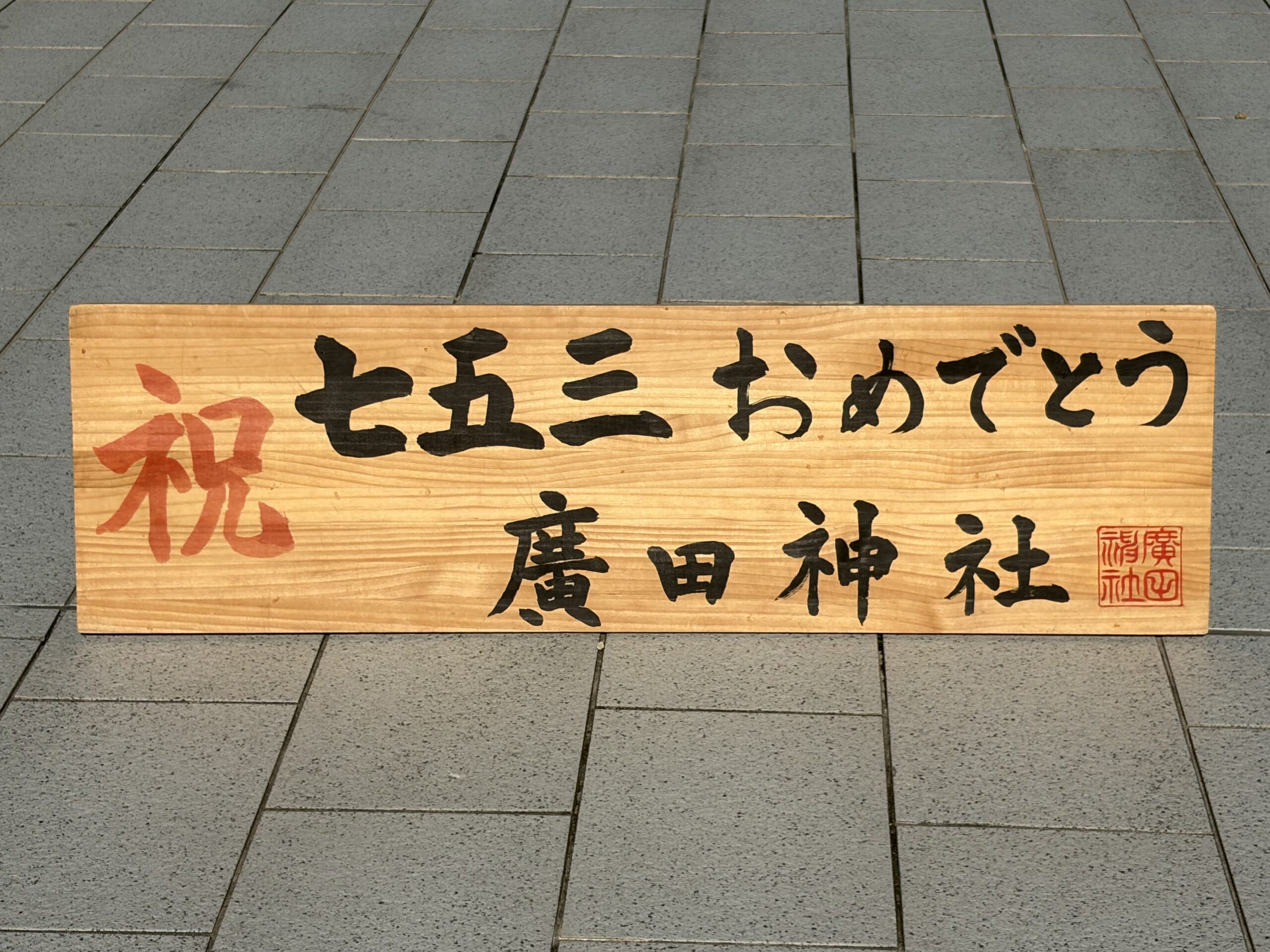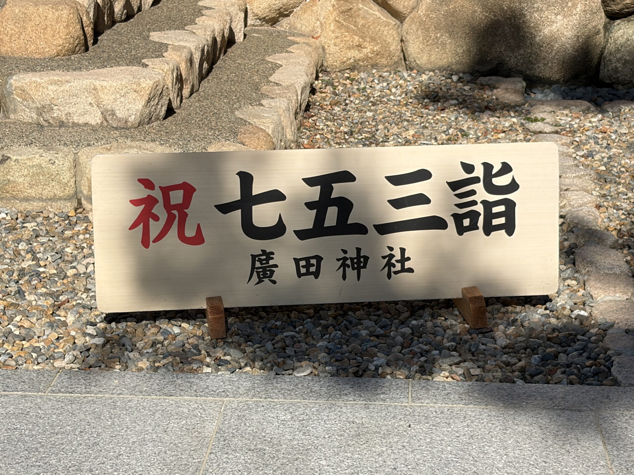 社殿に続く石畳には「祝 七五三 おめでとう」の看板が置かれていて記念撮影ポイントになっていました。