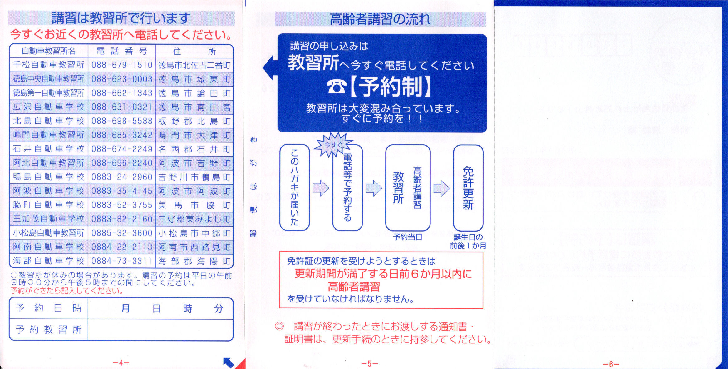 裏面には教習所の一覧と高齢者講習の流れが書かれています。