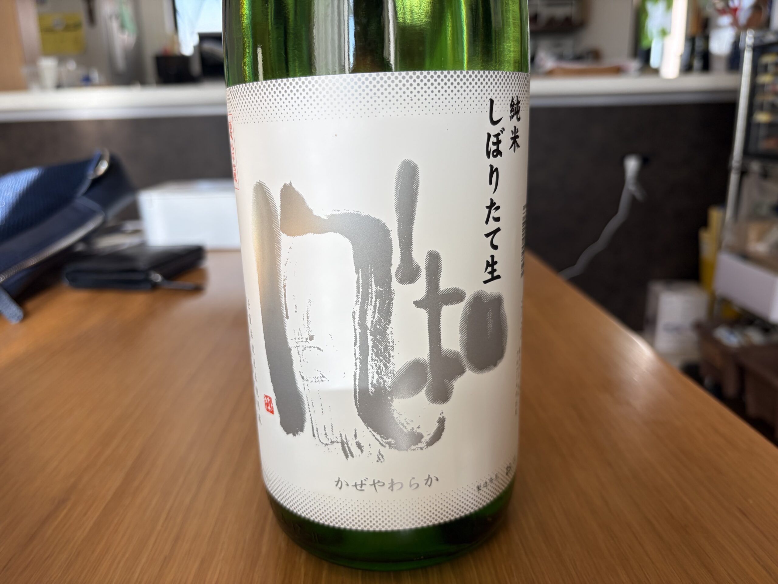 店の中は日本酒と焼酎が並んでいます。大きな冷蔵庫の中には何種類もの日本酒が並んていて壮観でした。正月用の日本酒に勧めていただいたのは佐渡の加藤酒造店が造っている「風和(かぜやわらか)」の純米しぼりたて生です。