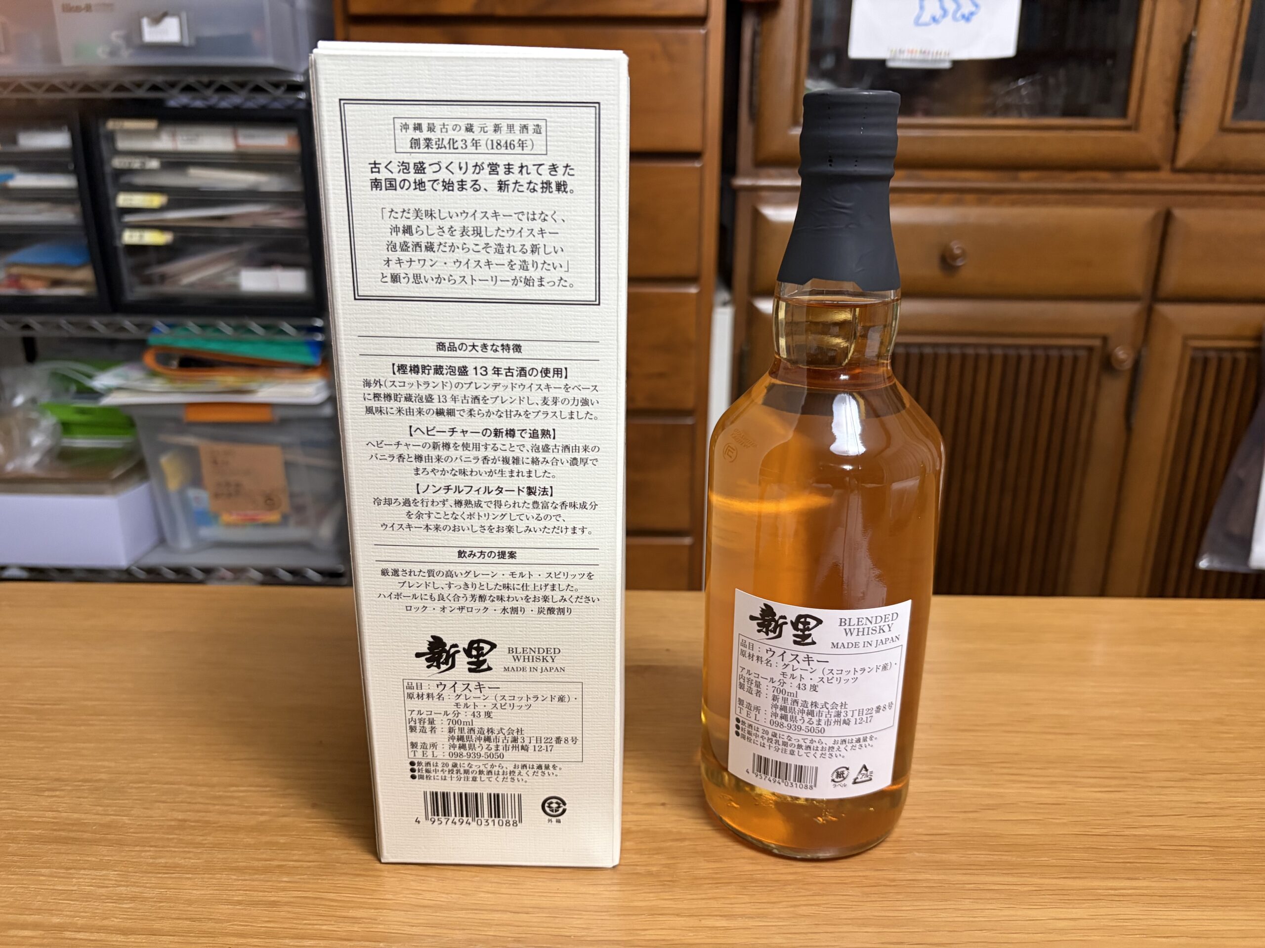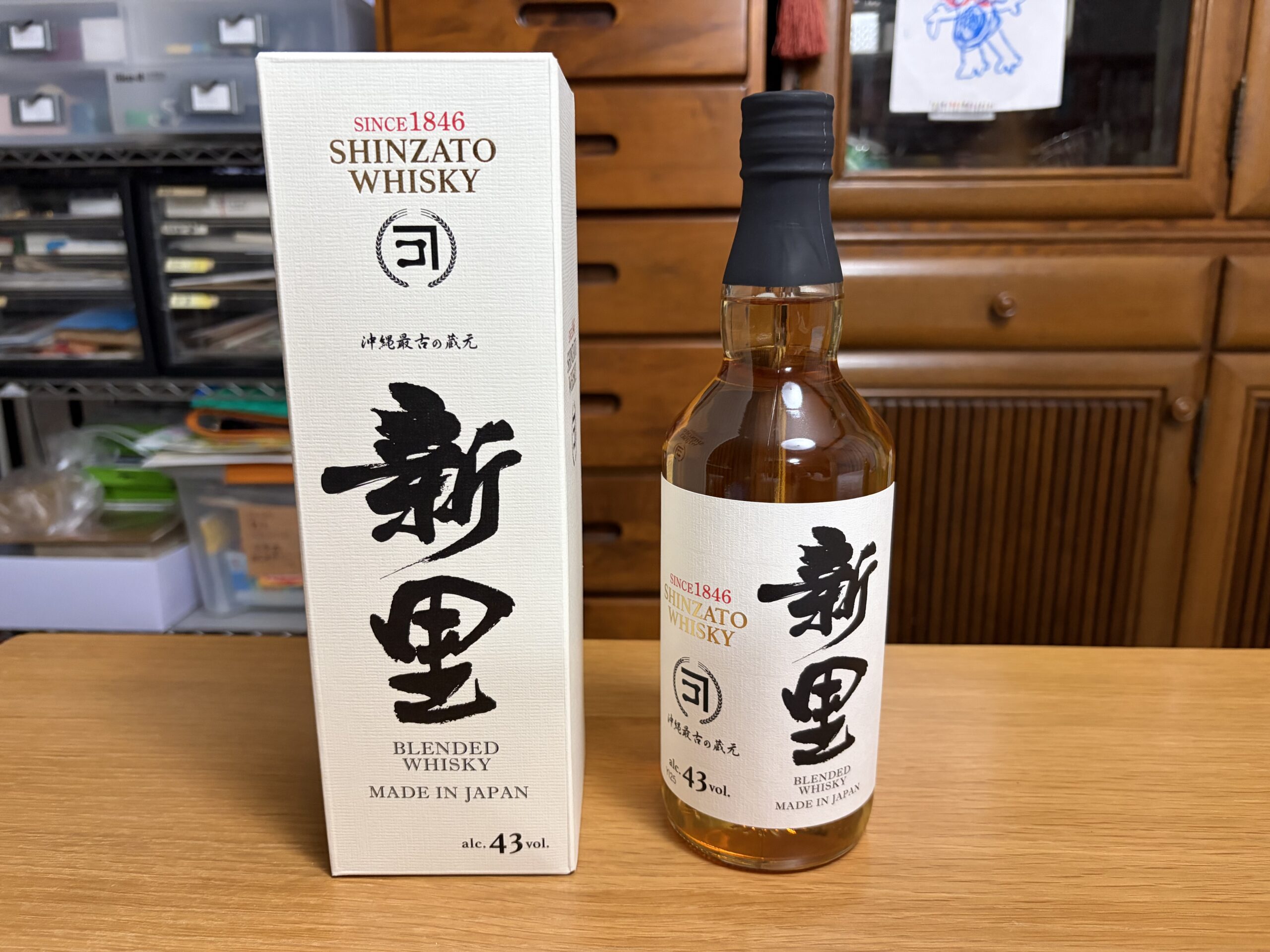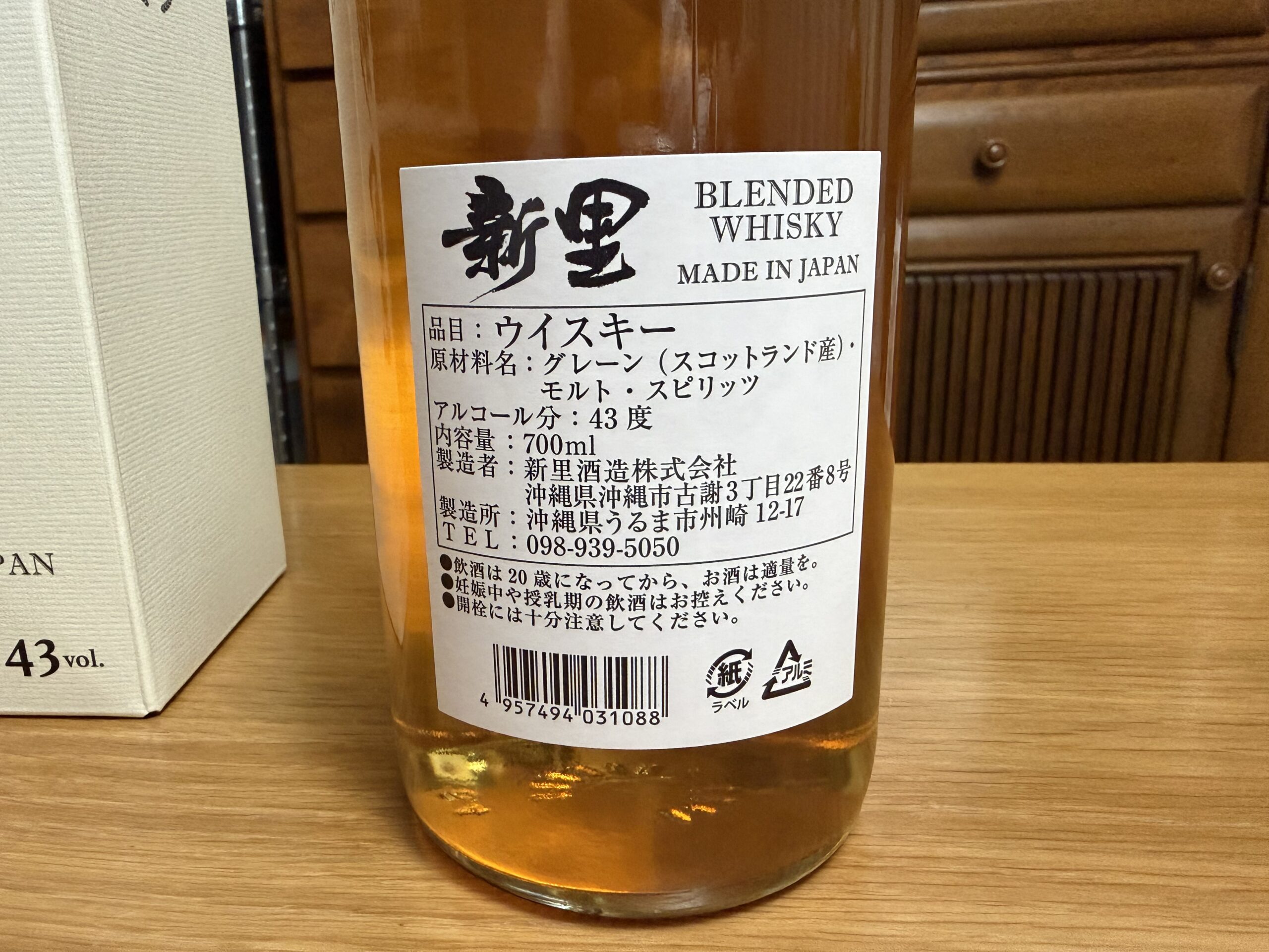 いつもお世話になっているO商会のT良専務から新里酒造のウィスキーをいただきました。