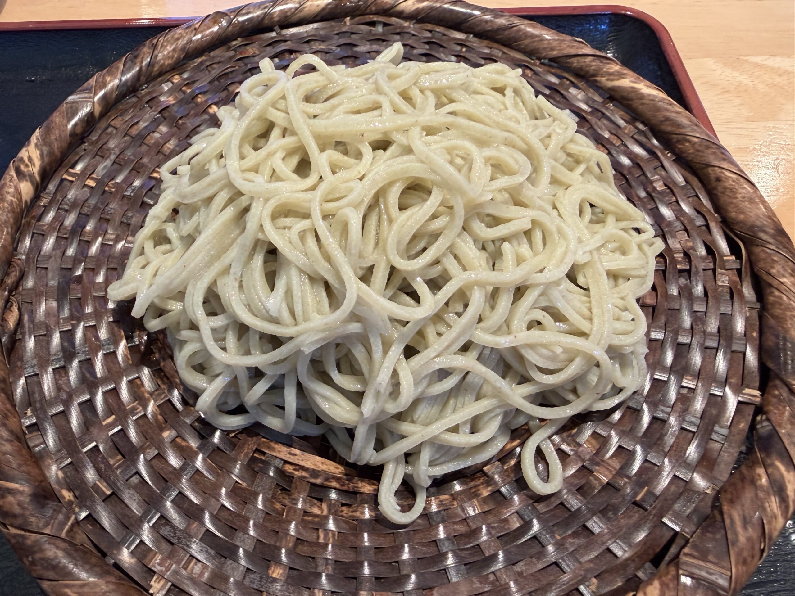 二八を食べ終わると直ぐに十割せいろが運ばれてきます。こちらはつなぎがないからでしょう、少し太めで短い麺になっています。こちらもアッという間に完食。