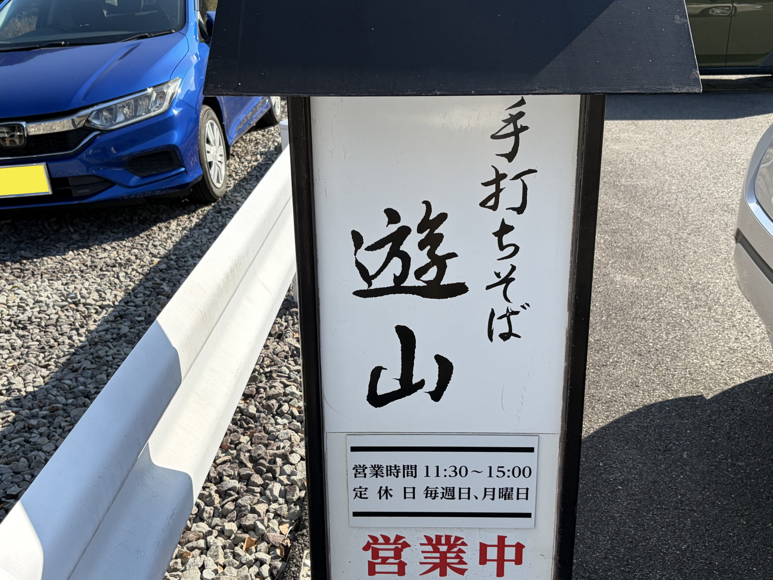 買い物がてら二ヶ月ぶりに「遊山」でお昼をいただくことにしました。12時少し前に店に着くと駐車スペースに数台分の空きがありました。