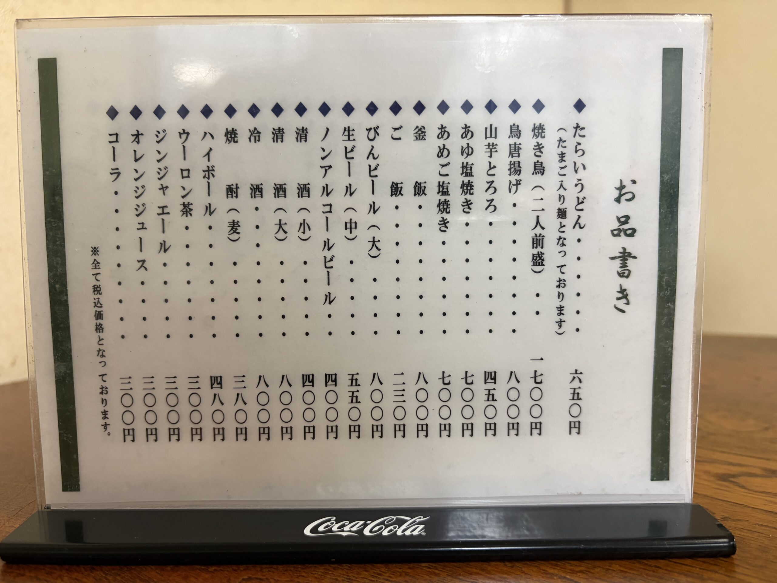 メニューはこちら。