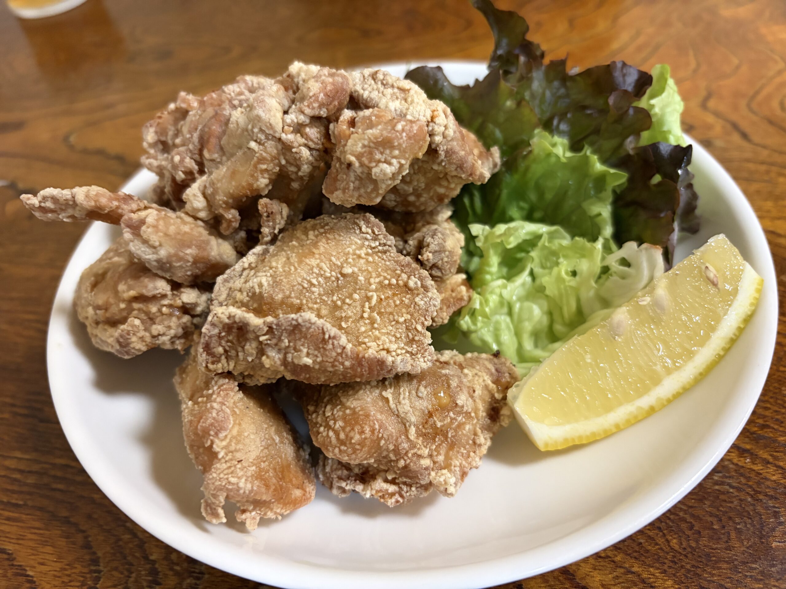 熱々でジューシーな唐揚げで下味がついているのでレモンを絞って頂きます。結構なボリュームがあって食べきれませんでした。