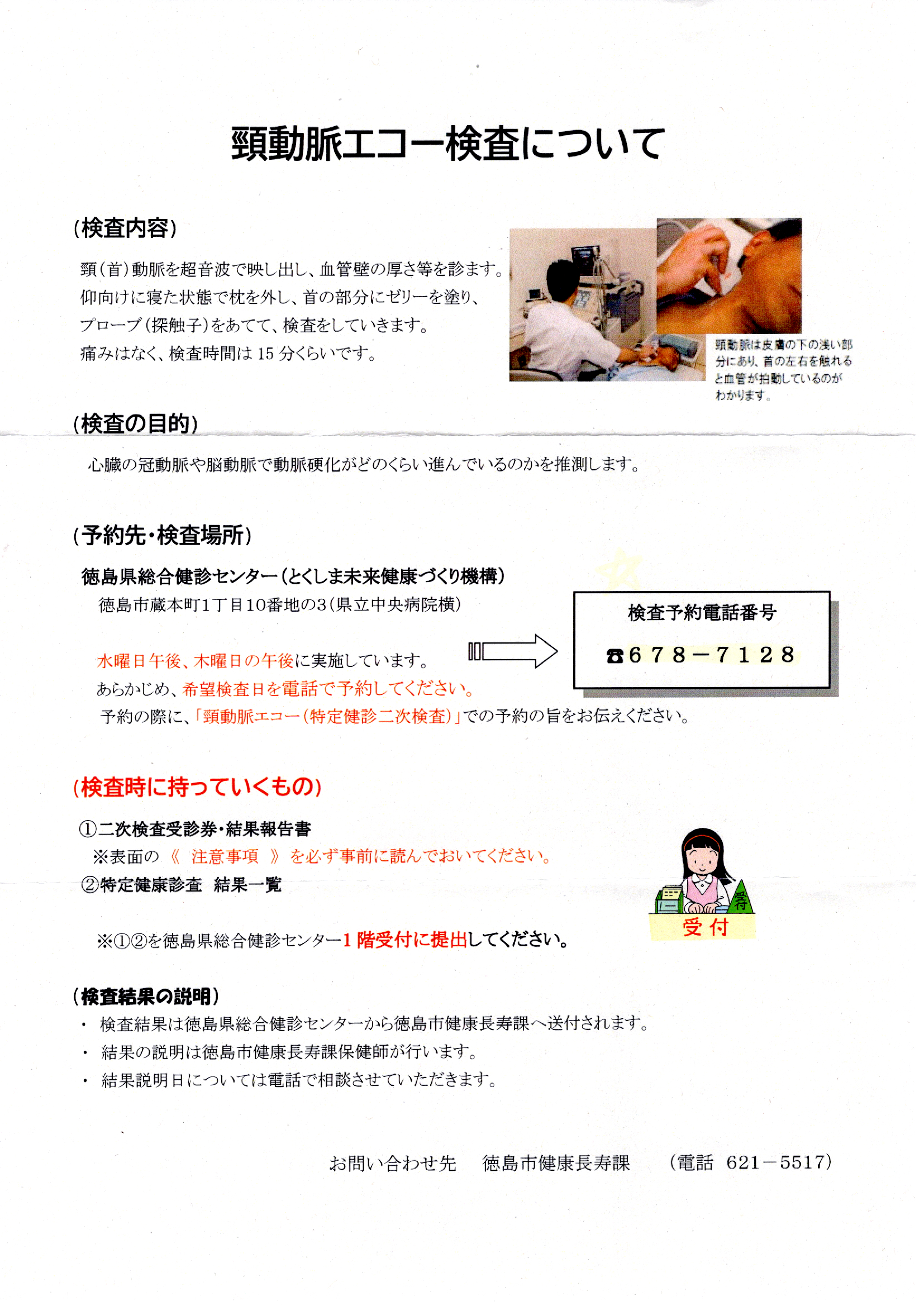 受診券は報告書と一体になっていて、受診結果は総合検診センターから徳島市健康長寿課に送られ、改めて面談で通知されることになっています。
