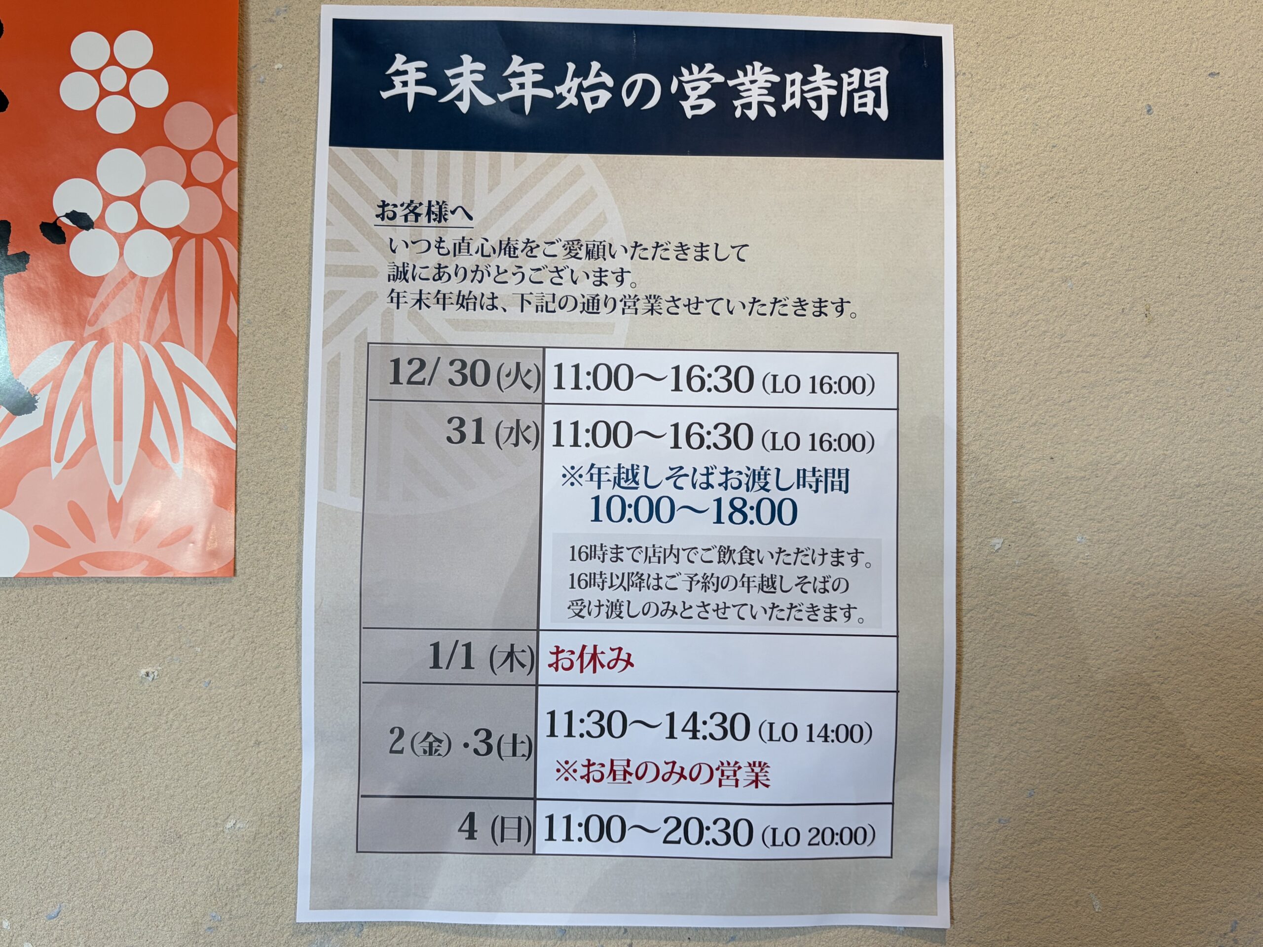 入り口に年末年始の営業カレンダーが張り出してありました。元日以外はずっと営業するようです。